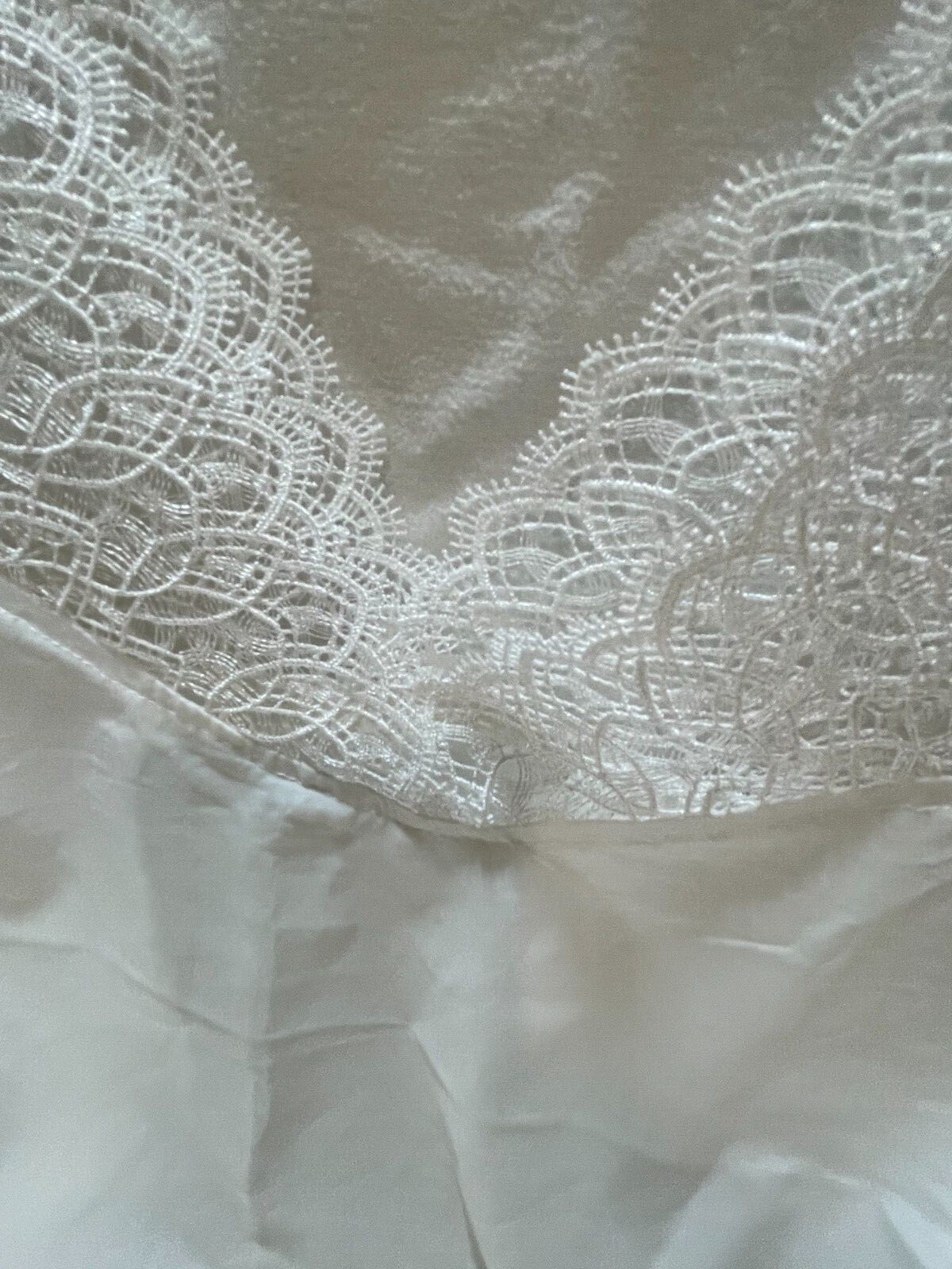 как выглядит White solid bodydress slip with lace straps, bust area darts polyester nightgown фото