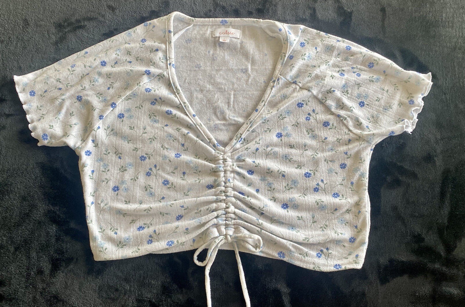 Colsie Crop Top Women's Short Sleeve floral white blue summer Drawstring Size L