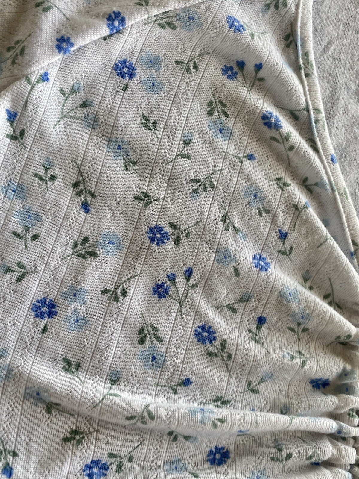 как выглядит Colsie Crop Top Womens Short Sleeve floral white blue summer Drawstring Size L фото
