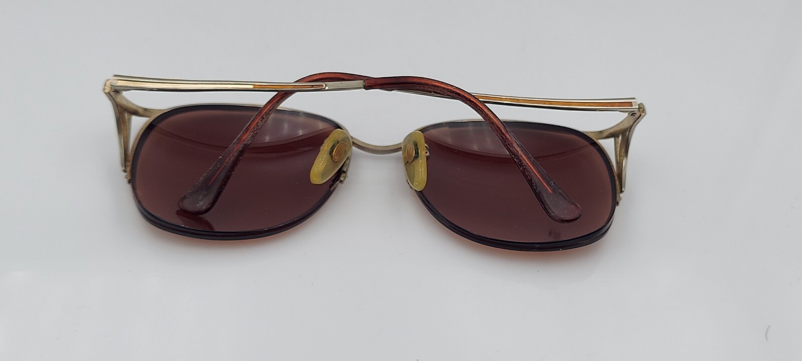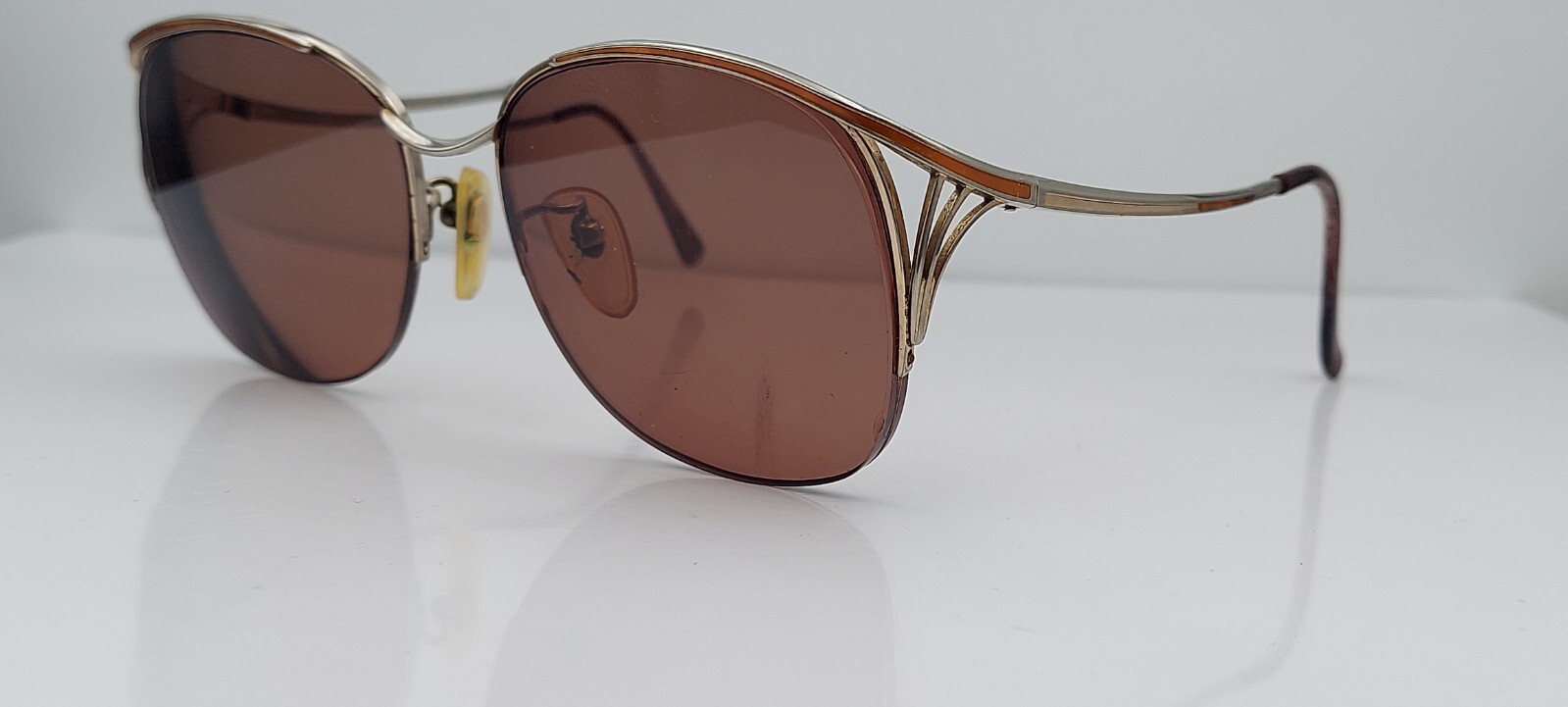 как выглядит Vintage Sebastiano Brown Gold Oval Half-Rim Sunglasses FRAMES ONLY фото