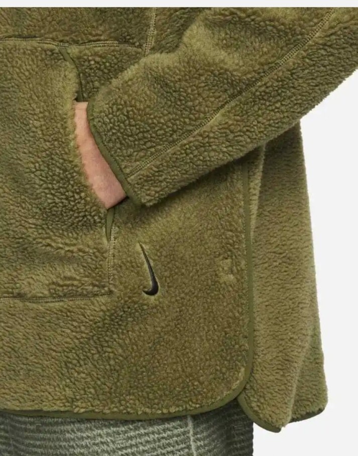 как выглядит NIKE Men s Yoga Sherpa Fleece Sweatshirt DD2182-326 Olive Green  NWT фото