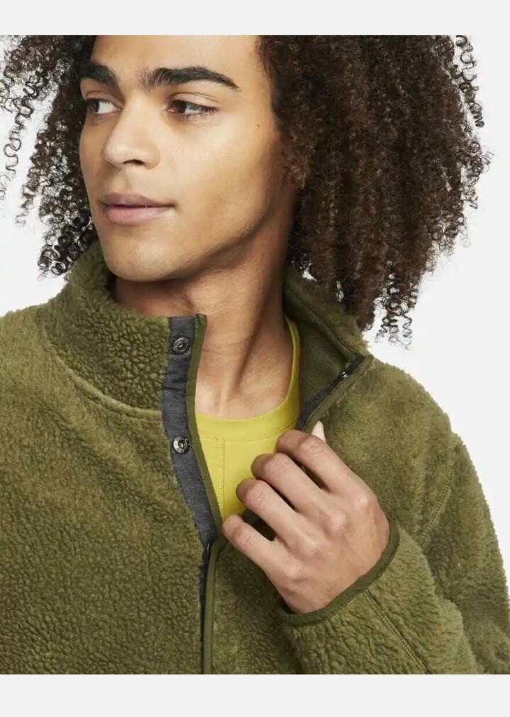 NIKE Men s Yoga Sherpa Fleece Sweatshirt DD2182-326 Olive Green NWT