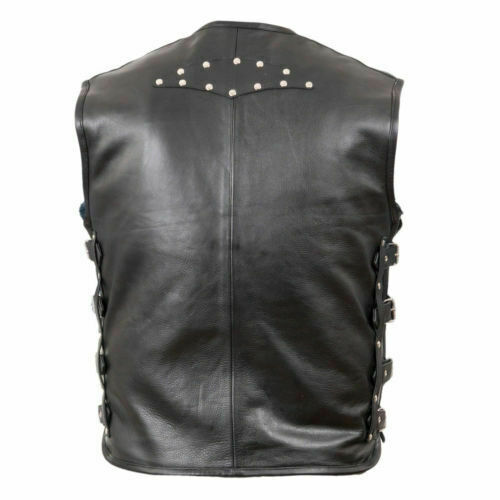 Men's Genuine Cow Leather Heavy Buckled Rocker Biker Motorcycle Vest Waistcoat