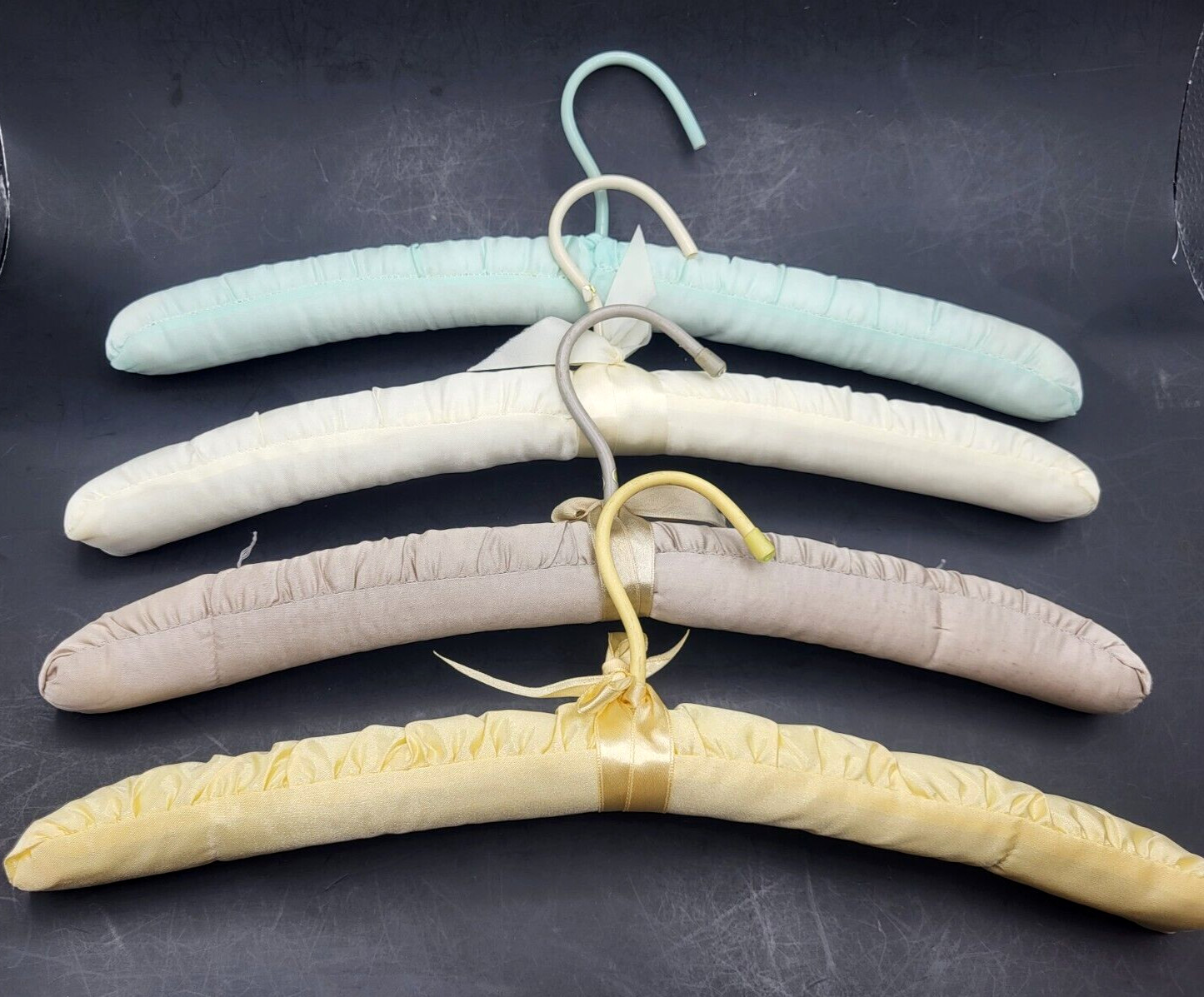 Vintage Satin Covered Clothes Hangers Pastel Colors Set of 4