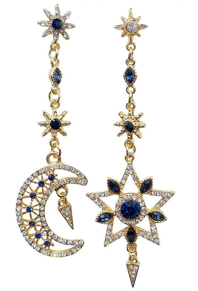 как выглядит Asymmetrical Celestial Moon Star Drop Earrings - Horoscope, Bling, Sparkle фото