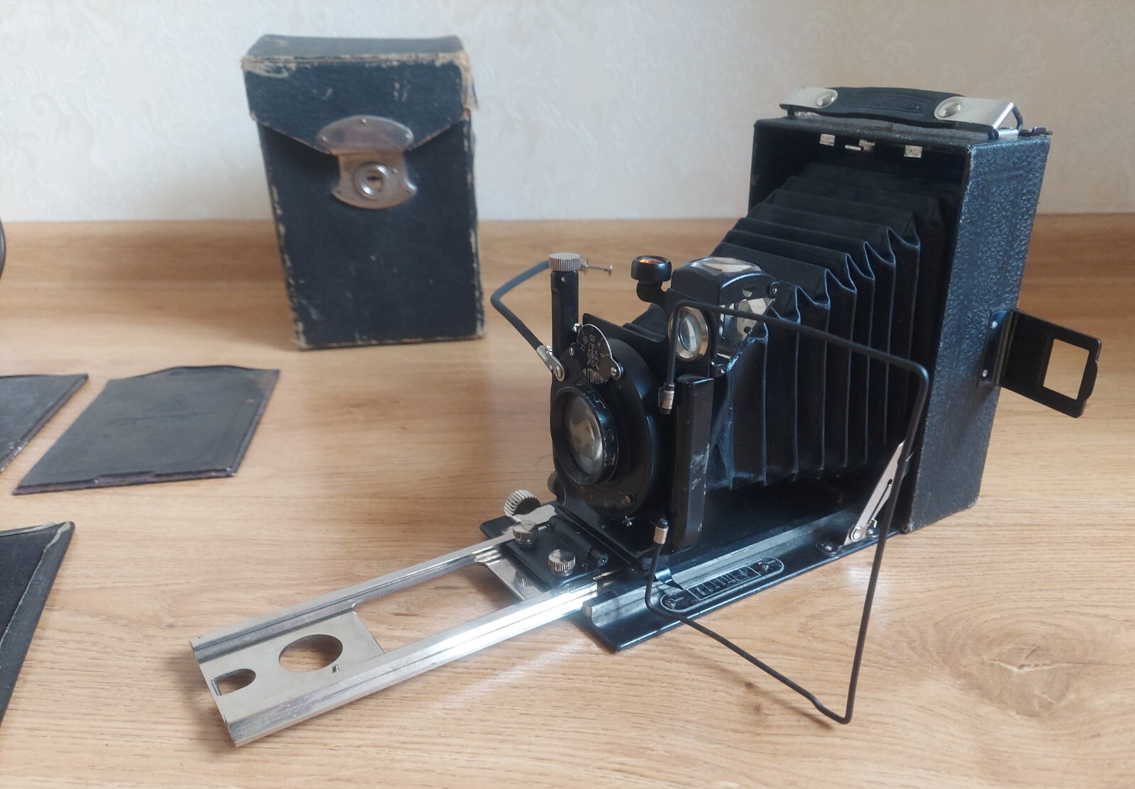 как выглядит Folding camera FOTOKOR 1 GOMZ 9x12 Lens: ORTAGOZ 4.5/135. USSR Vintage фото