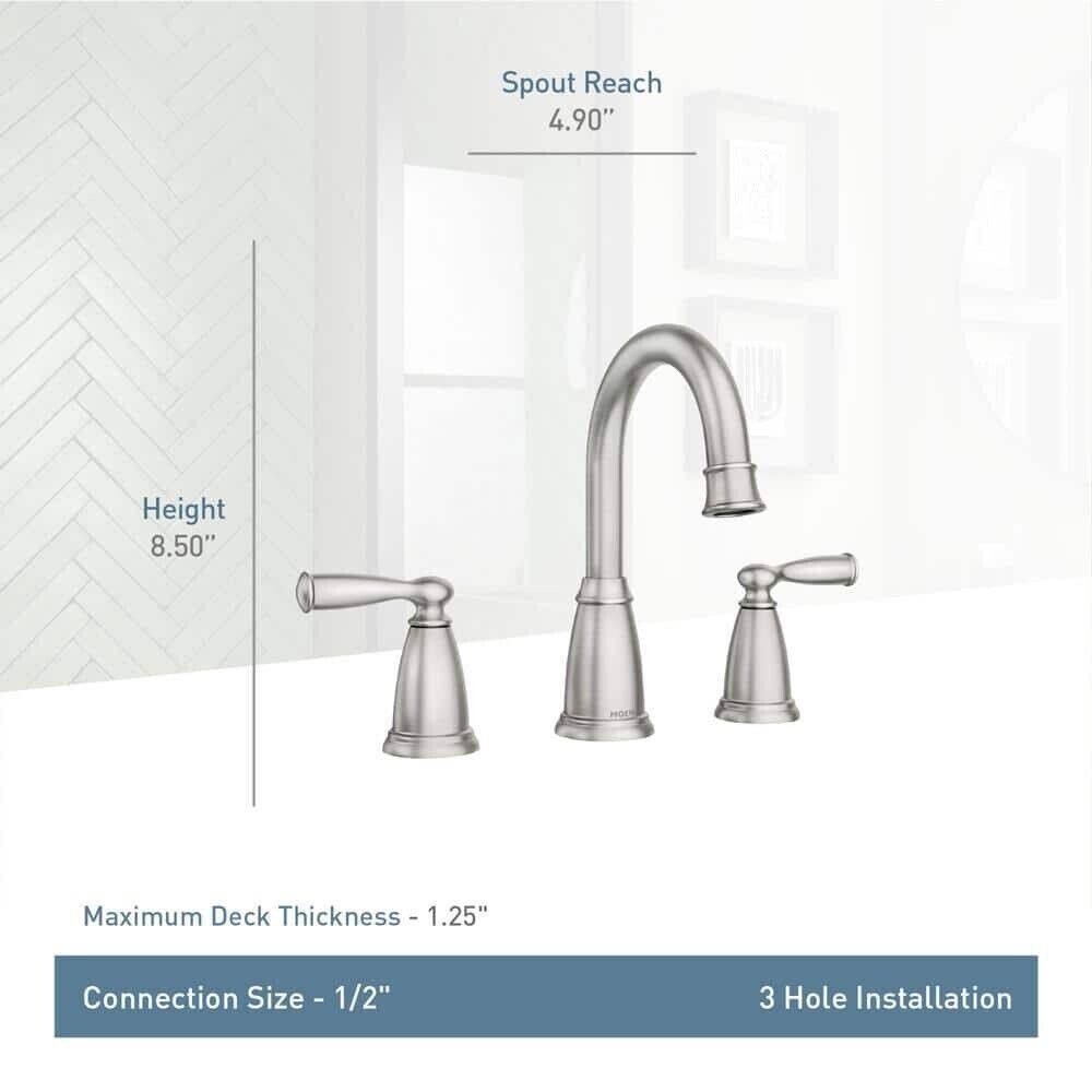 как выглядит Moen Banbury 8 Widespread Double Handle High-Arc Bathroom Faucet 84947SRN фото