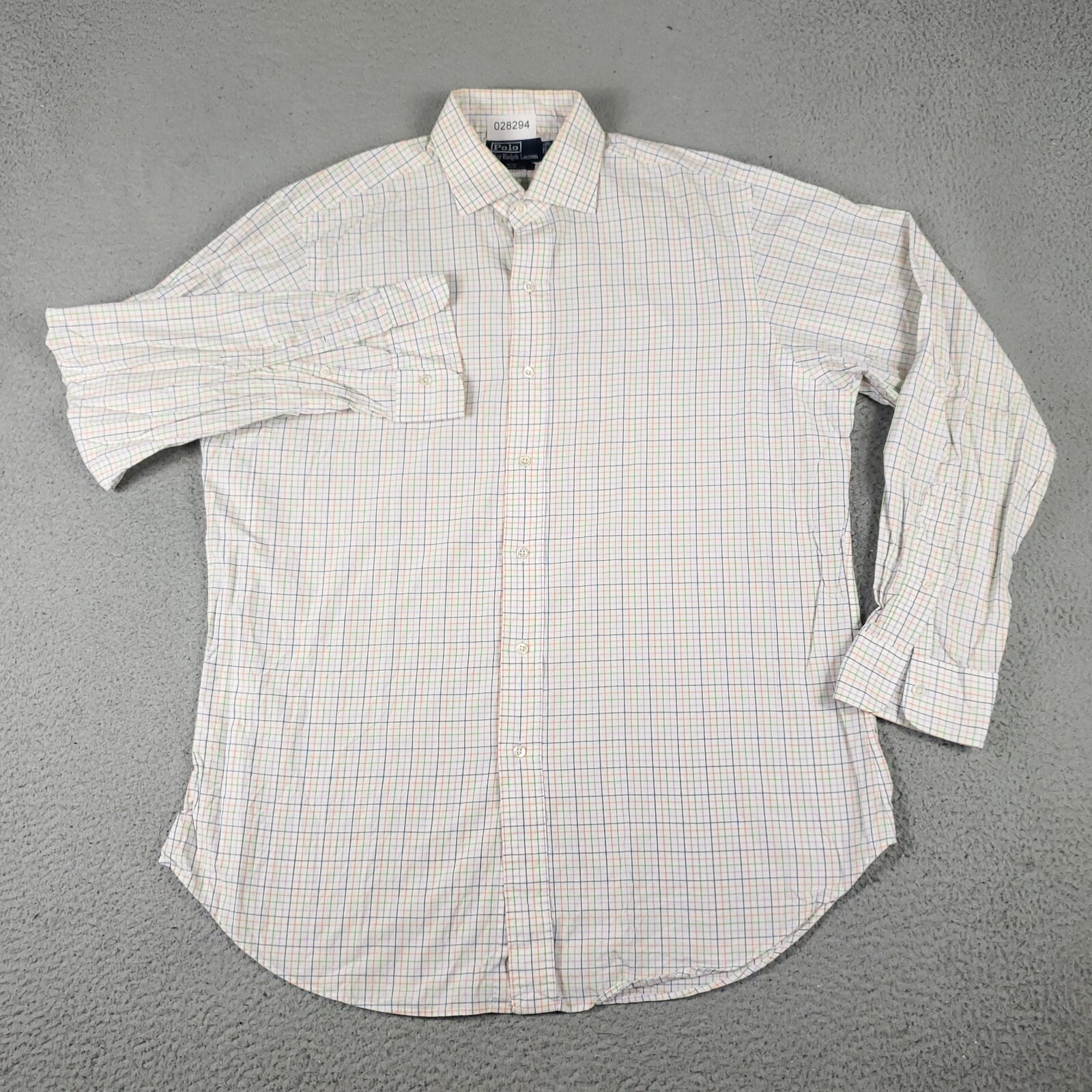 Ralph Lauren Shirt Mens 16.5 White Blue Check Pony Dress Button Up Long Sleeve