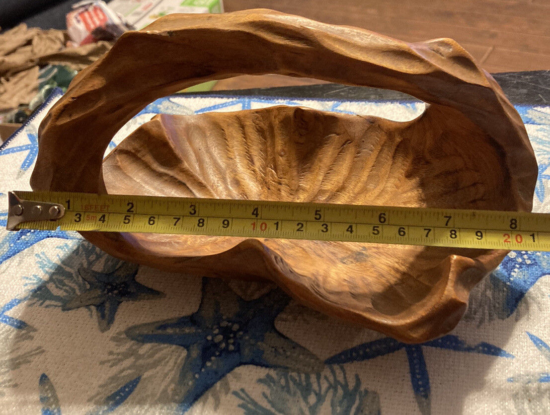 • Artisan HANDCARVED BURL WOODEN BASKET/BOWL w/handle. Root Tree 33