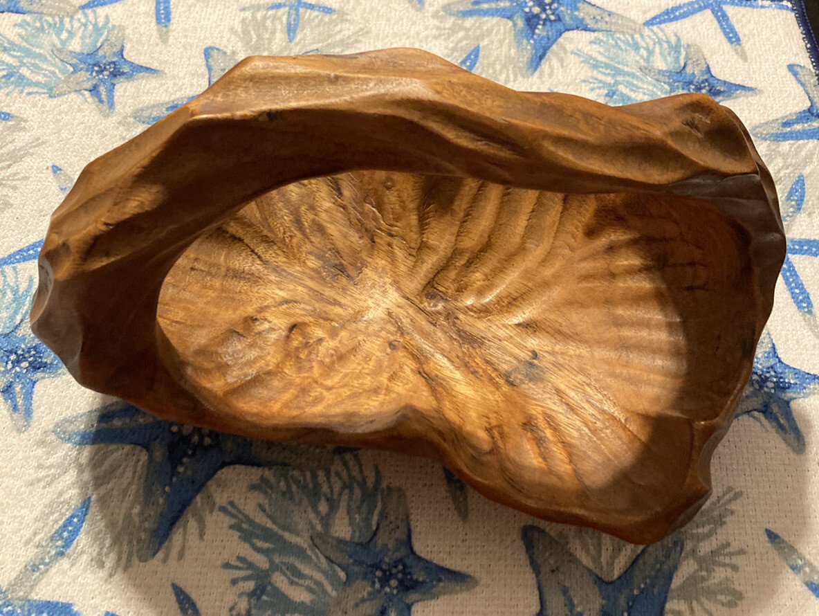 Artisan HANDCARVED BURL WOODEN BASKET/BOWL w/handle. Root Tree 33