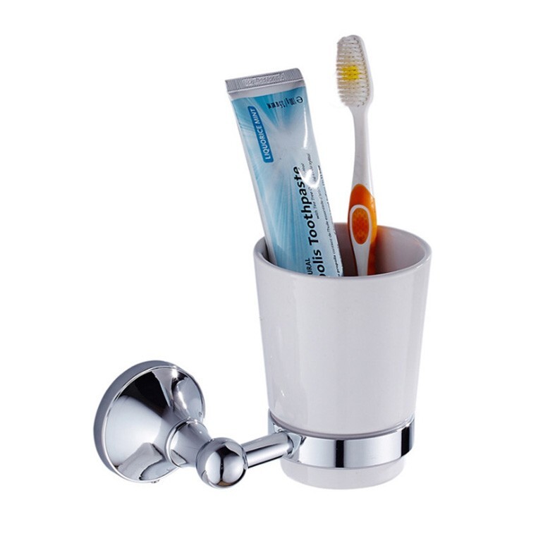Polished Chrome Wall Mounted Toothbrush Holder with Single Ceramic Cup eba942