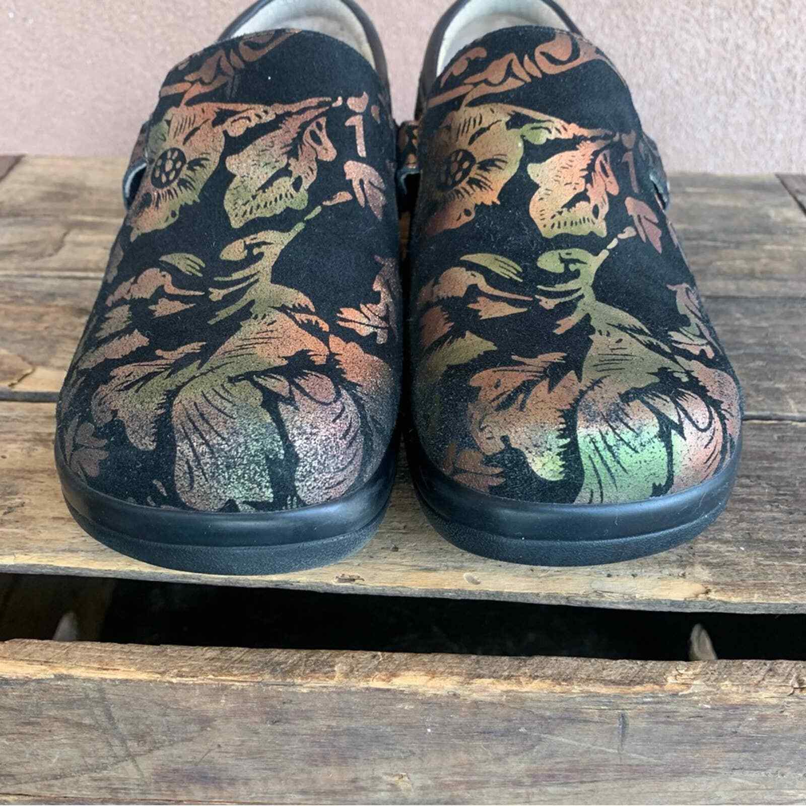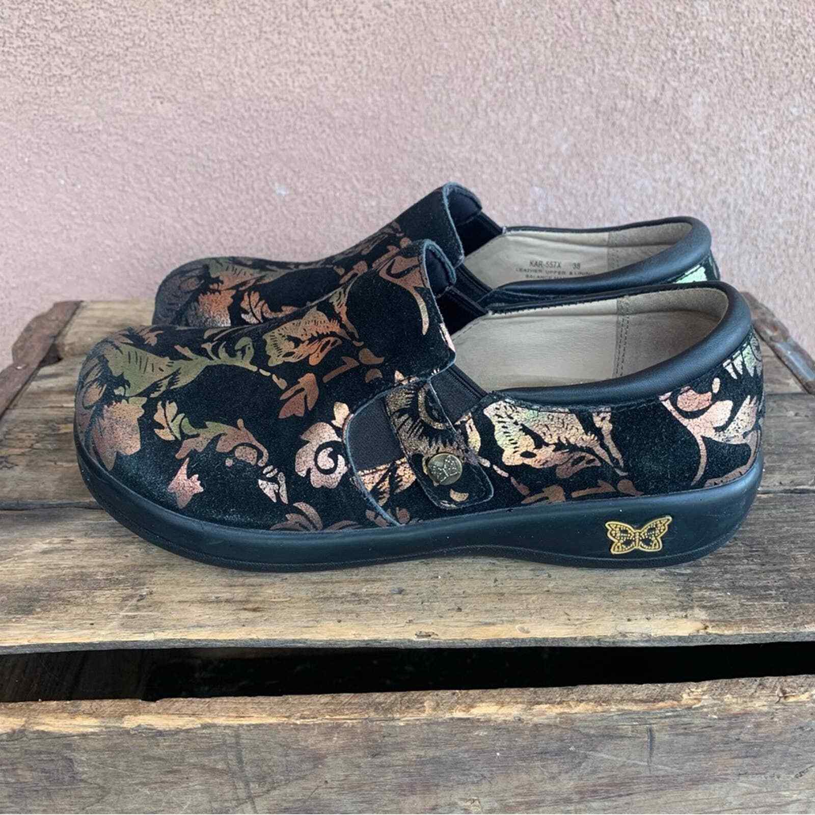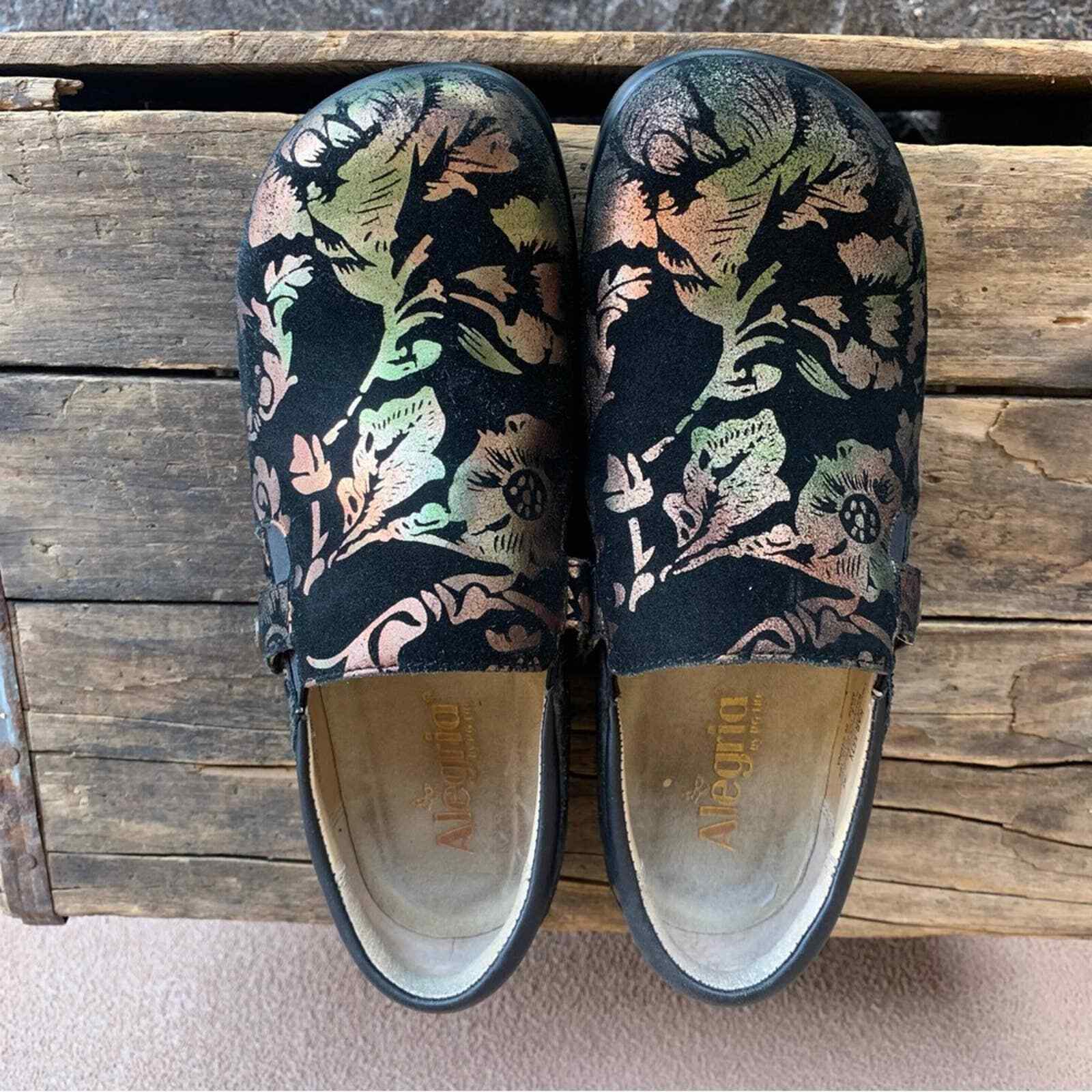 как выглядит Alegria by PG Lite Black Floral Slip On Shoes фото