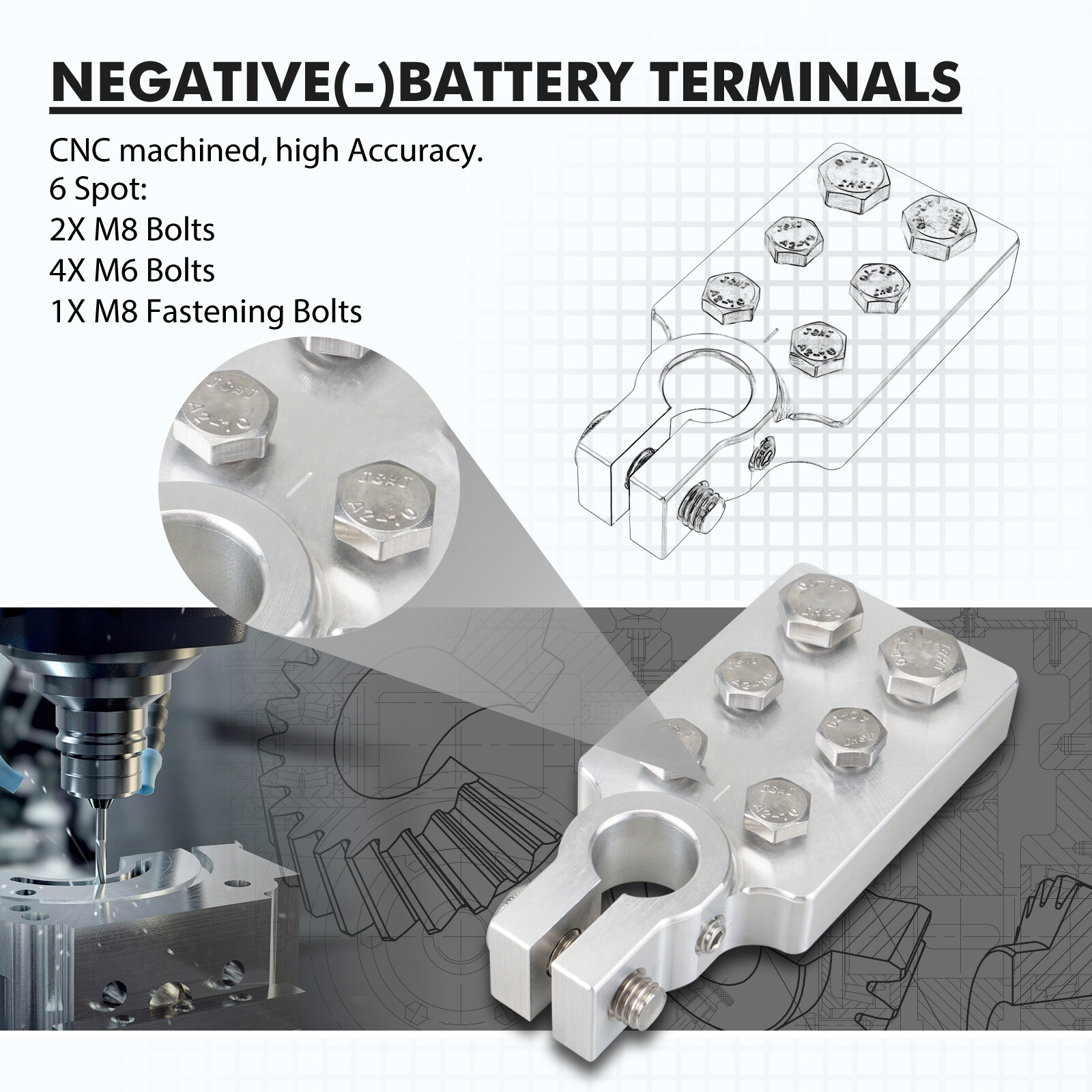Aluminum Flat Lug Battery Terminal For SAE Top Post Clamp For External Power