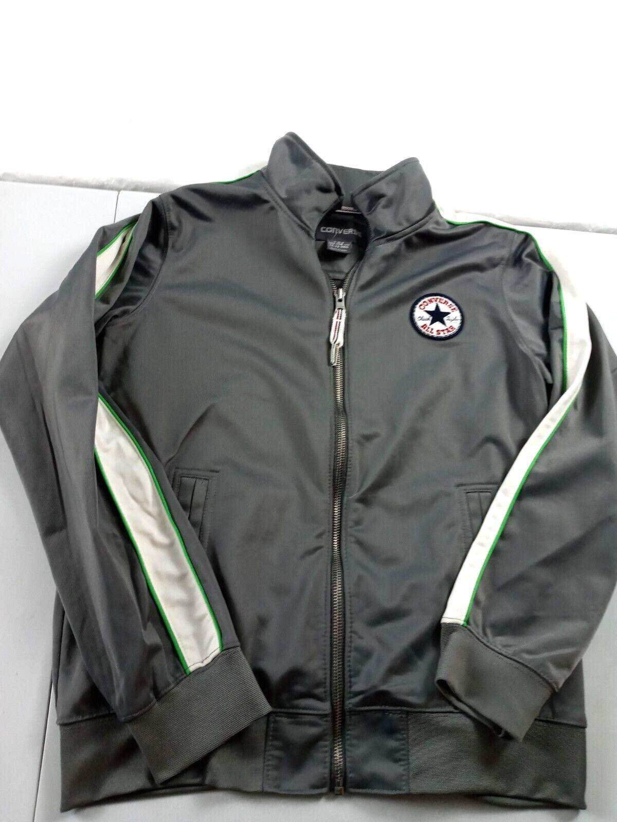 Converse Track Jacket Boys size Large Gray Full Zip Logo Running Basketball Gym