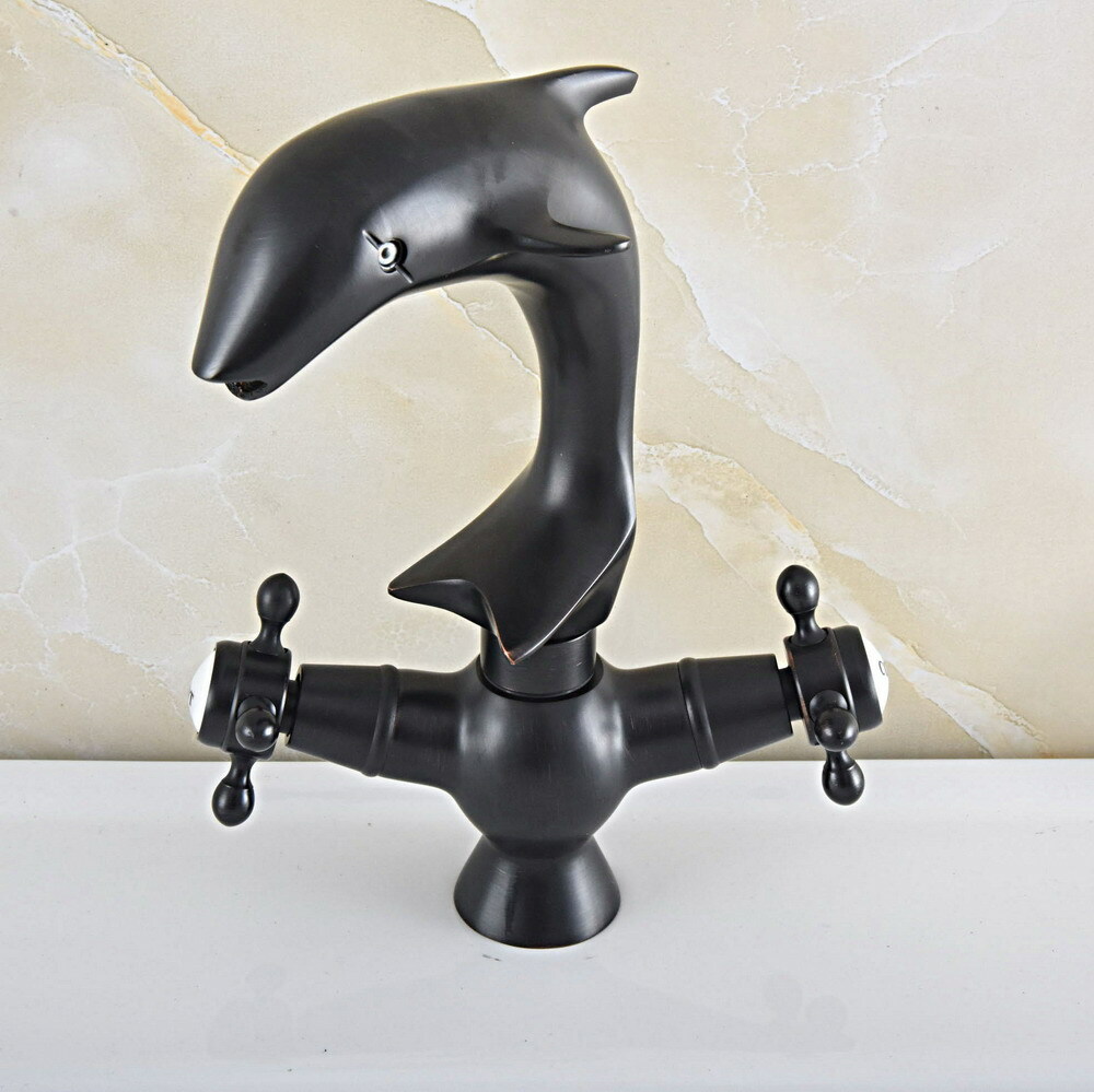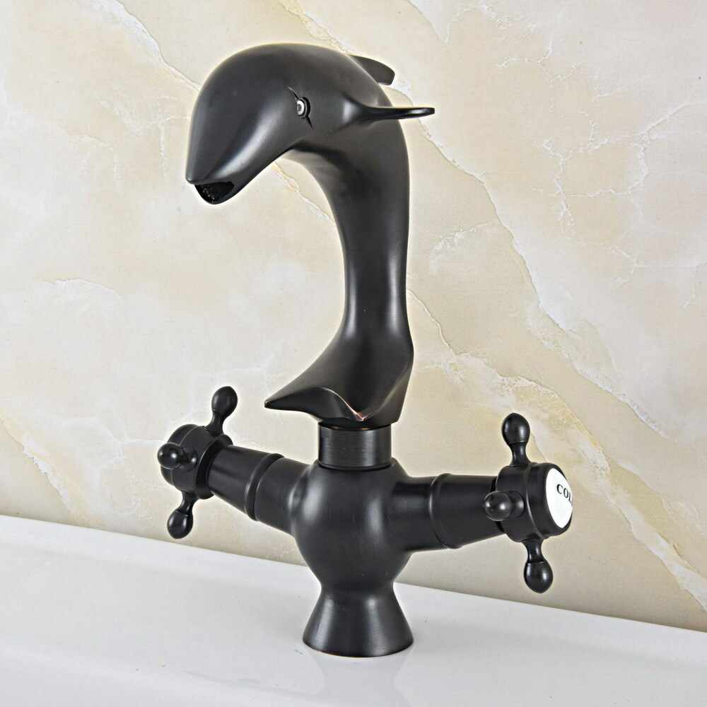 Oil Rubbed Bronze Dolphin Shape Bathroom Kitchen Sink Faucet Mixer Tap esf843