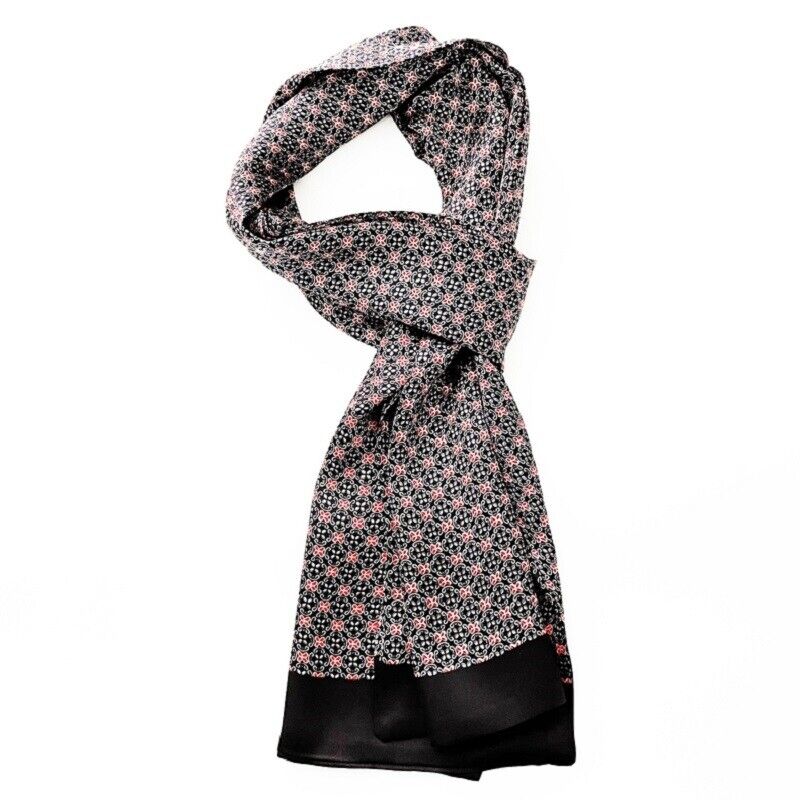 Men's 100 Silk Scarf Cravat Double Layer Long Neckerchief Floral Mufflers Black