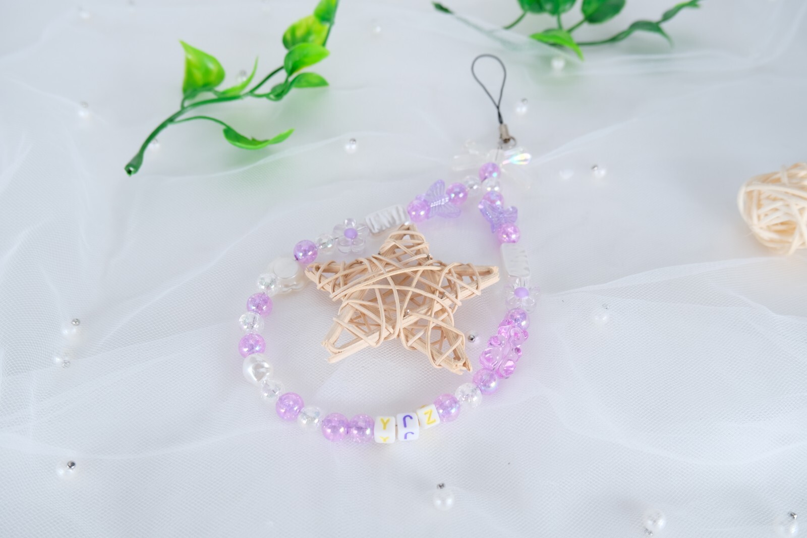 как выглядит Camellia Butterfly Letter Beaded Phone Charm Accessories Mobile Phone Cord Strap фото