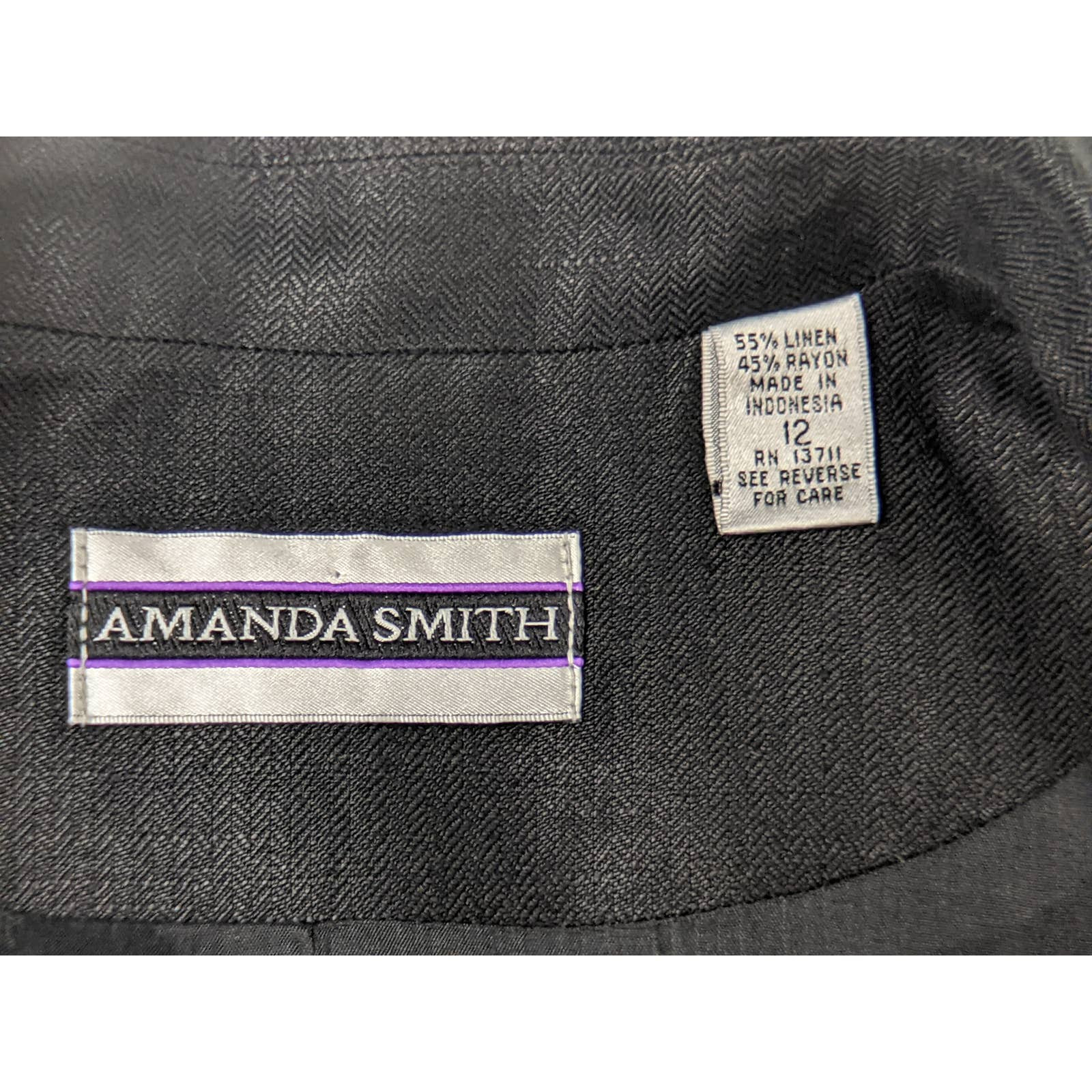 Womens AMANDA SMITH Blazer Linen Top Black Short Sleeve Lined Button Size 12