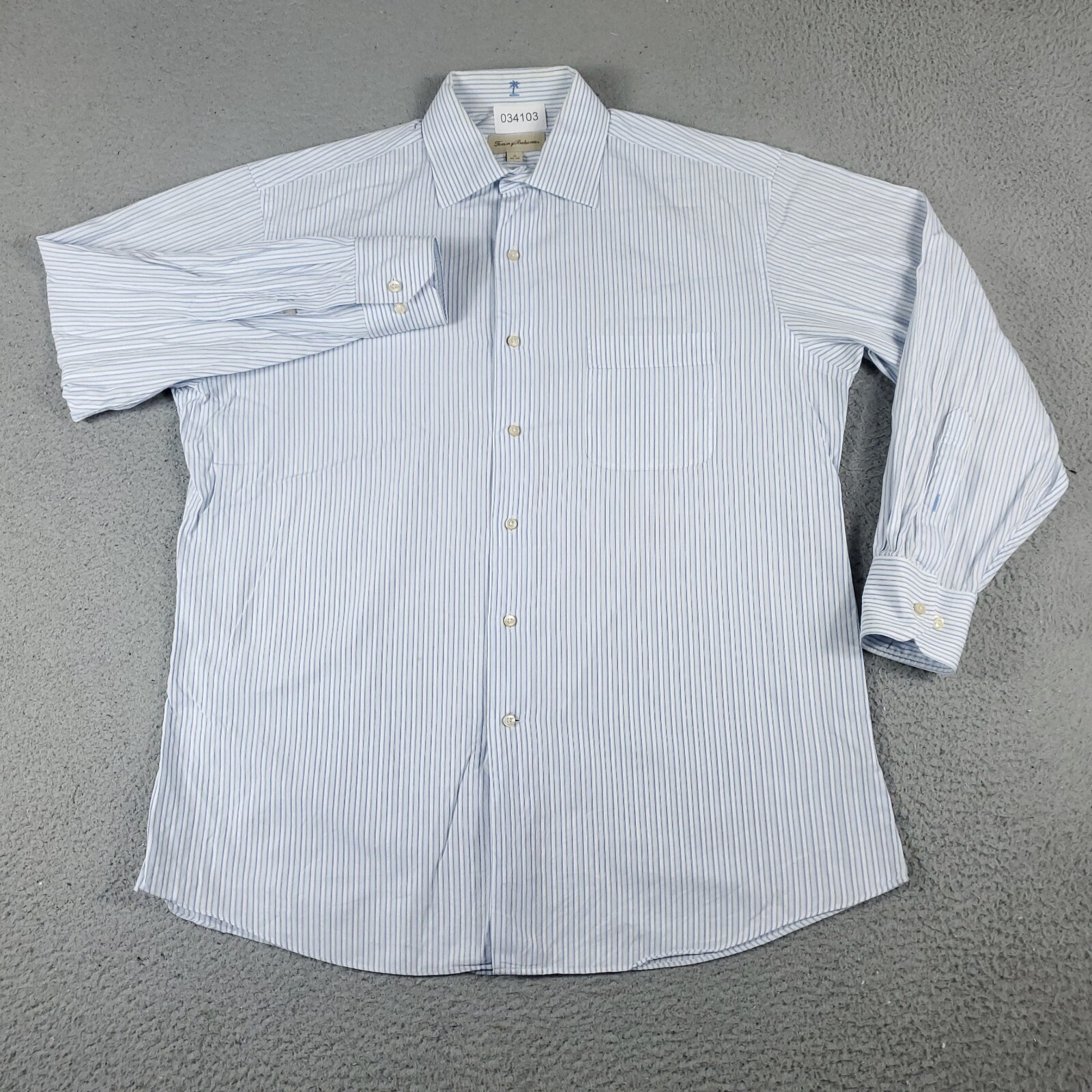 как выглядит Tommy Bahama Shirt Mens 16 White Blue Striped Dress Button Up Long Sleeve фото