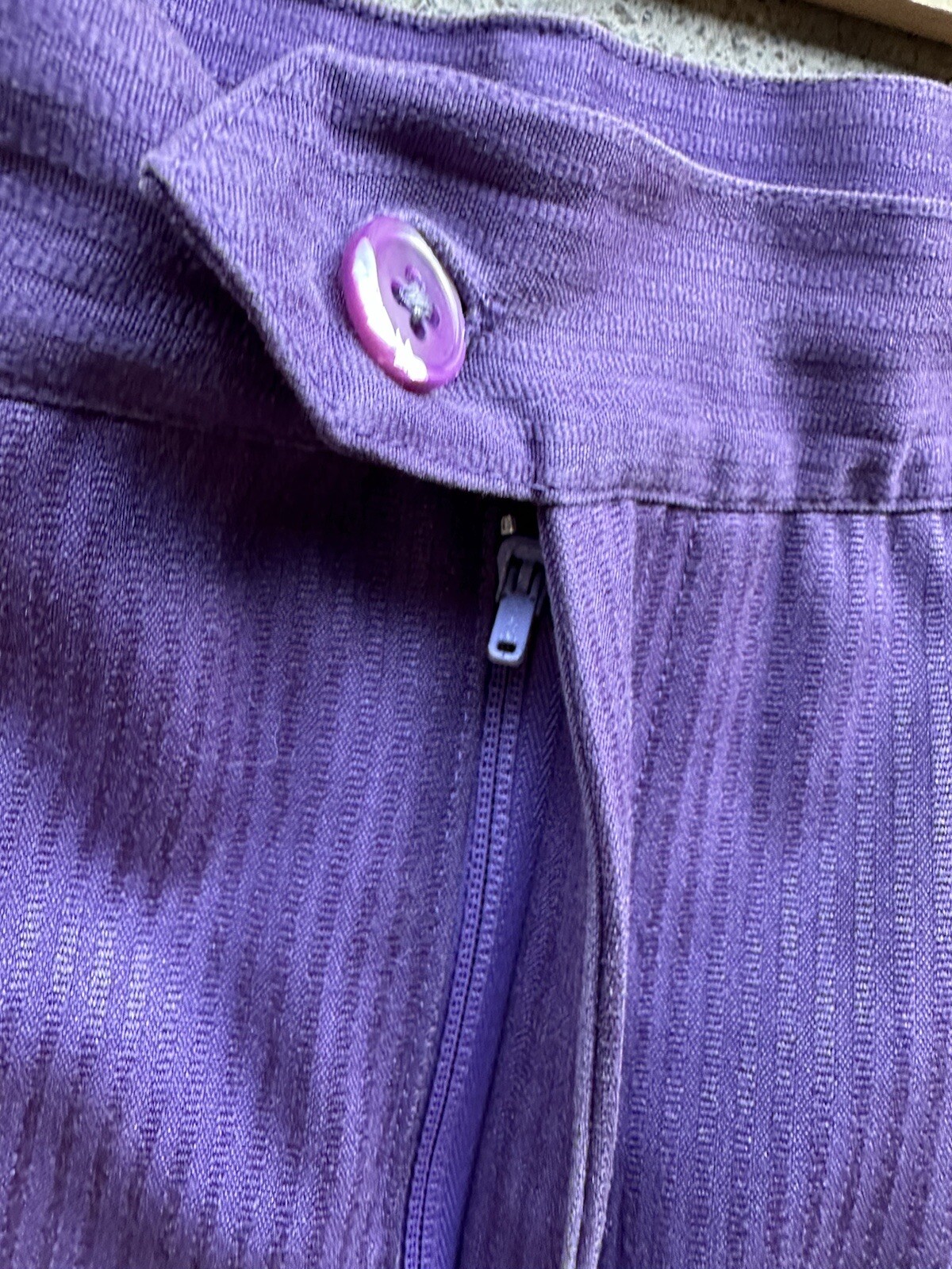 Vintage 100 Silk Made in Hong Kong Striped Purple Dress / Casual Pants Size 10