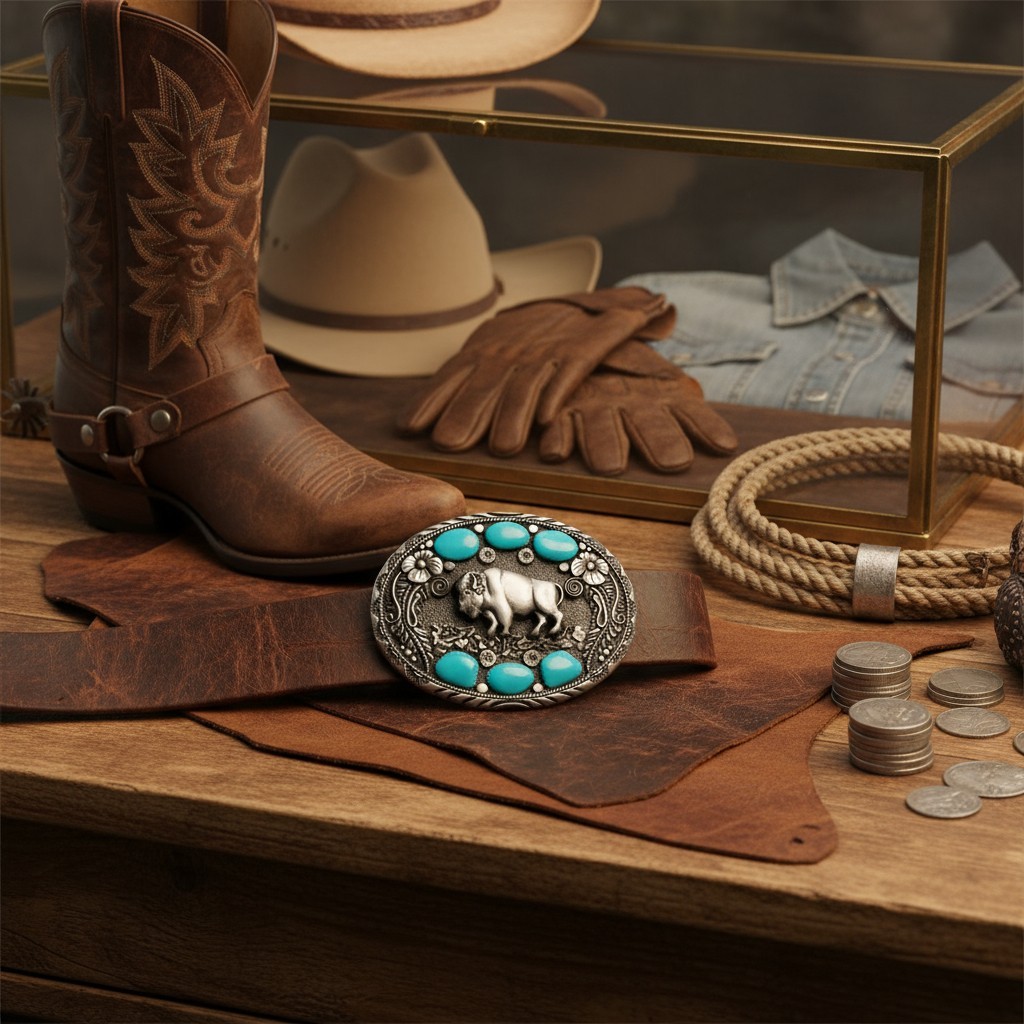 как выглядит Men Buffalo Ox Silver Metal Belt Buckle Bull Turquoise Pants Jeans Fashionable фото