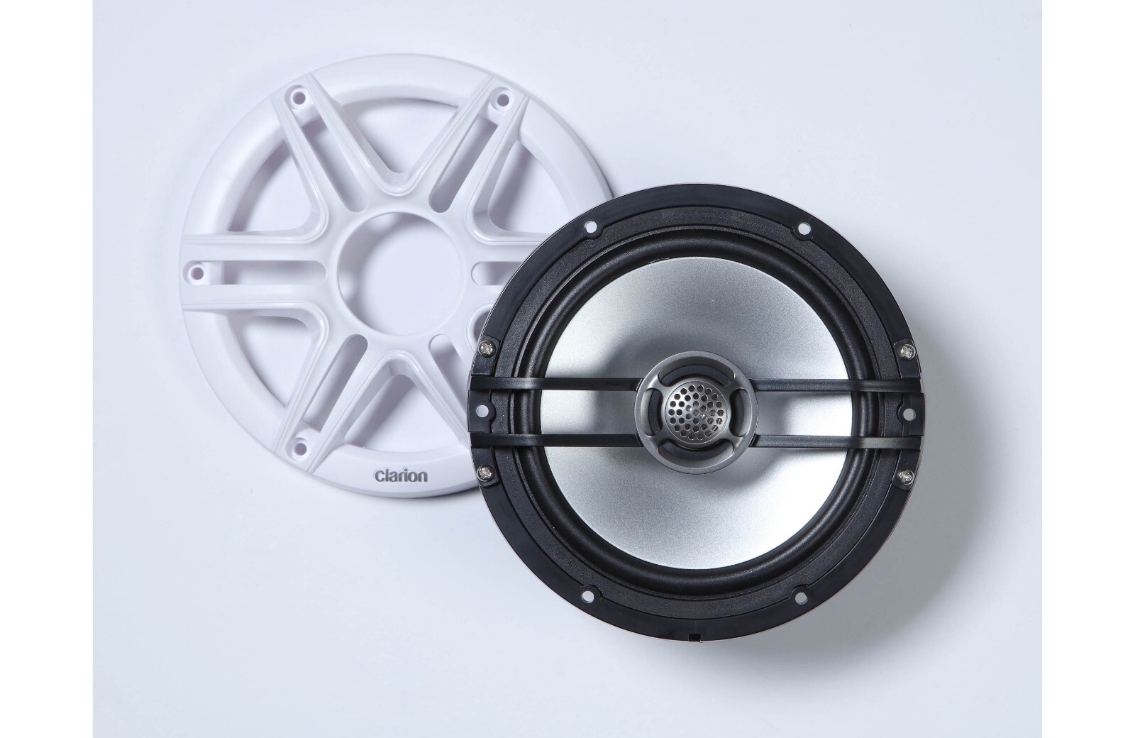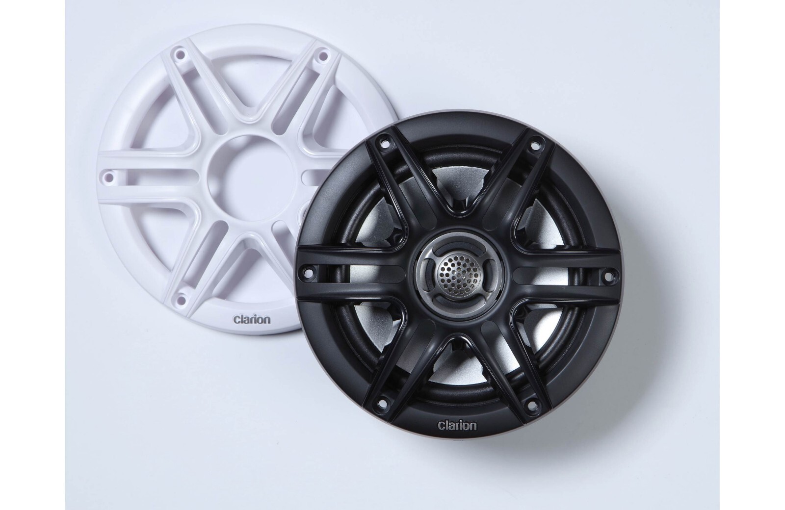 Clarion CMS-651-SWB Marine 6.5 2-Way Speakers 60w Pair w/ Black White Grilles