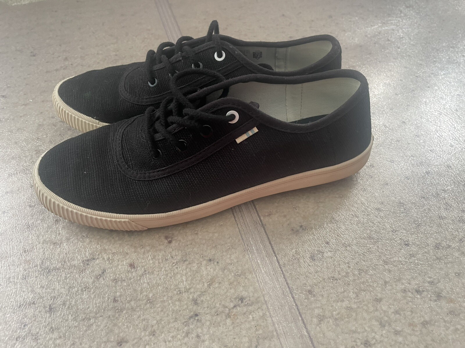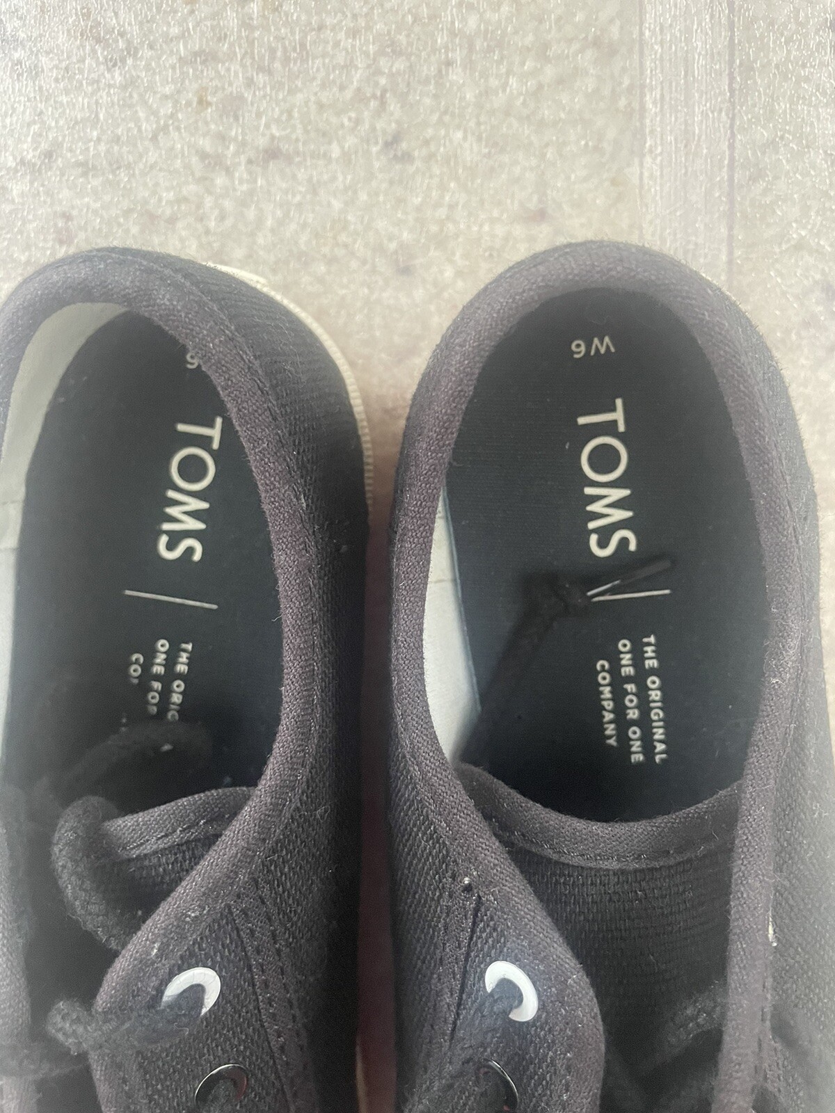 как выглядит Toms Shoes Womens Size 6 Black Canvas Alpargata Lace Up Sneaker Coastal Beach фото