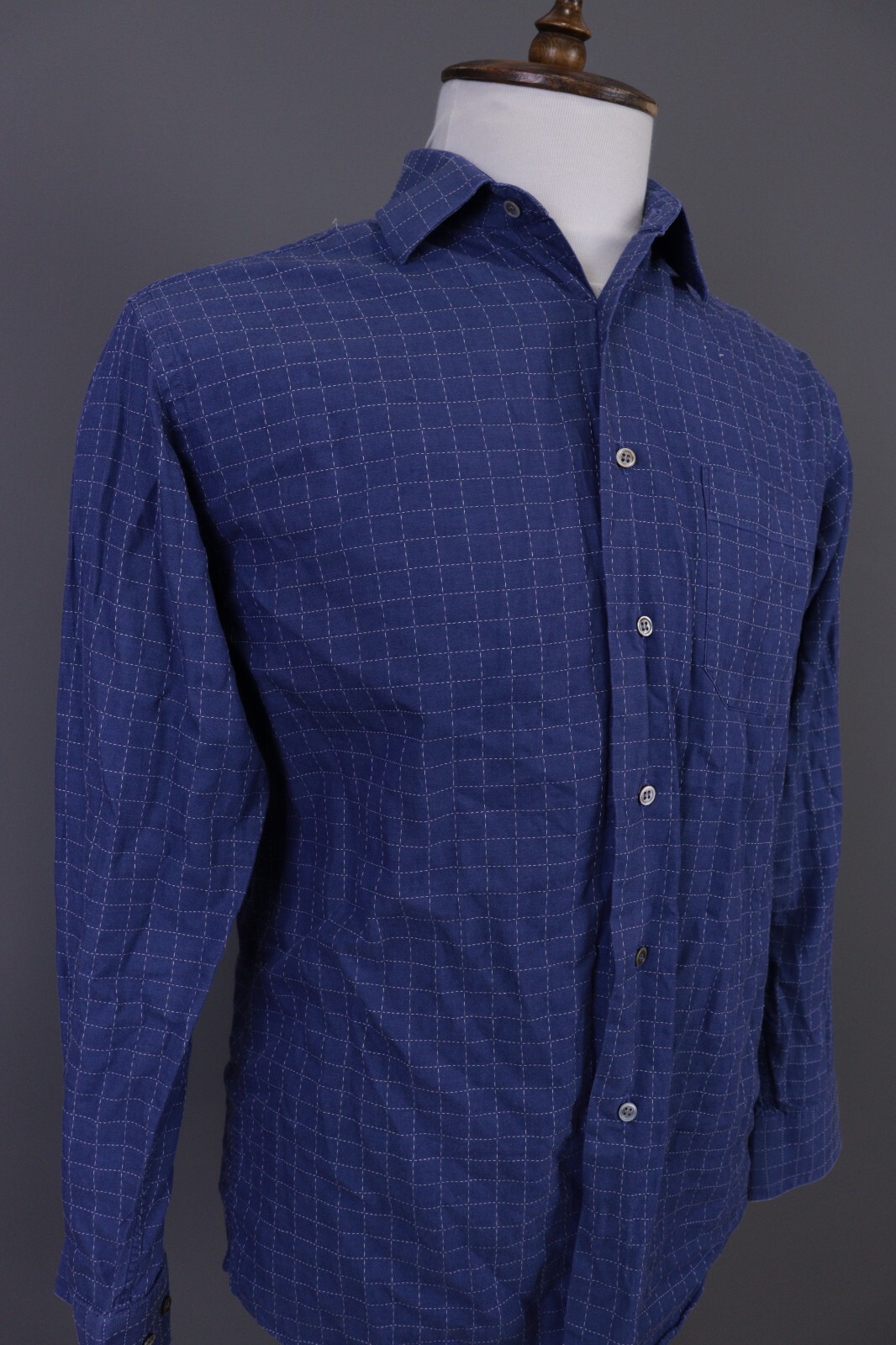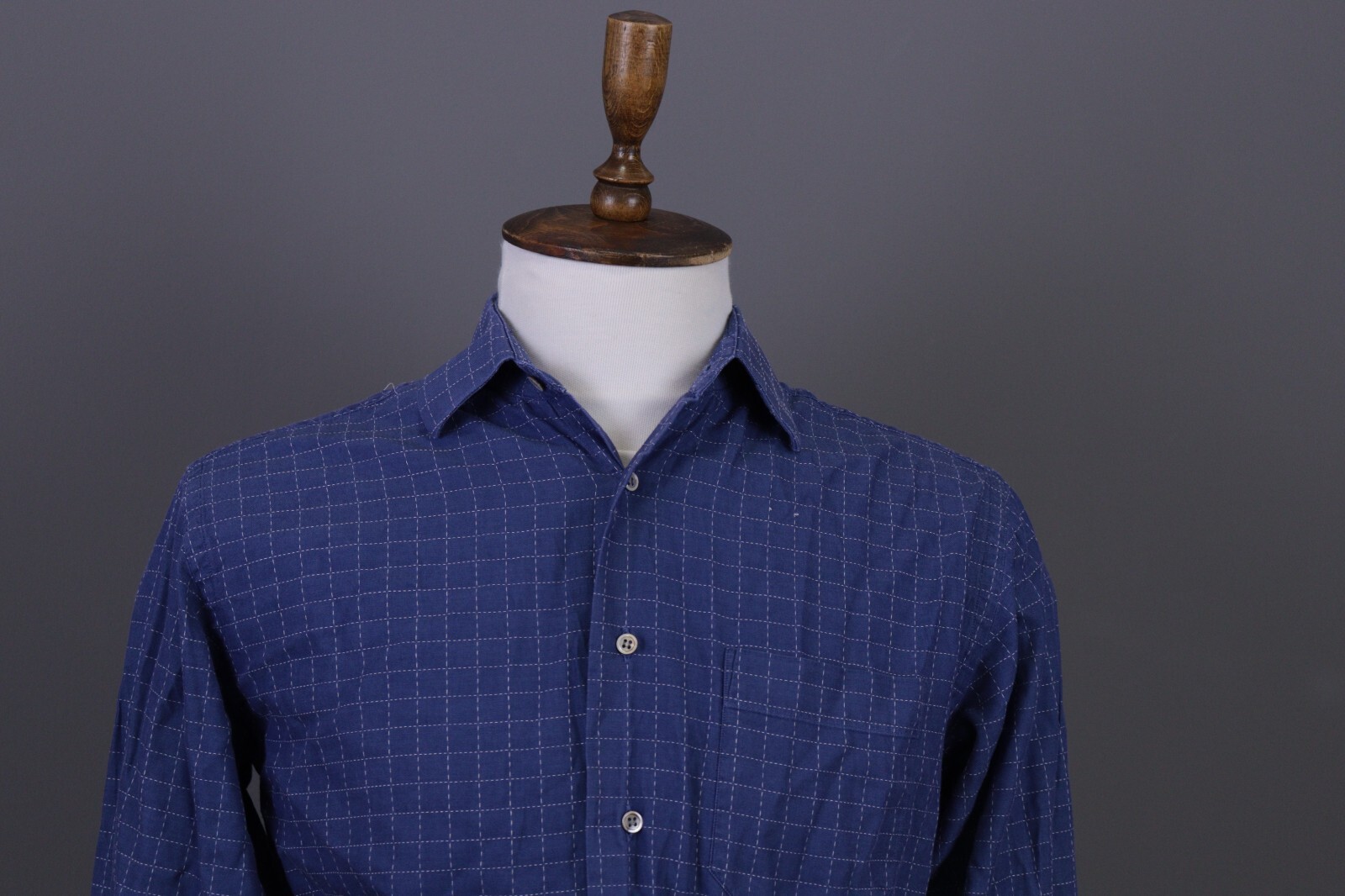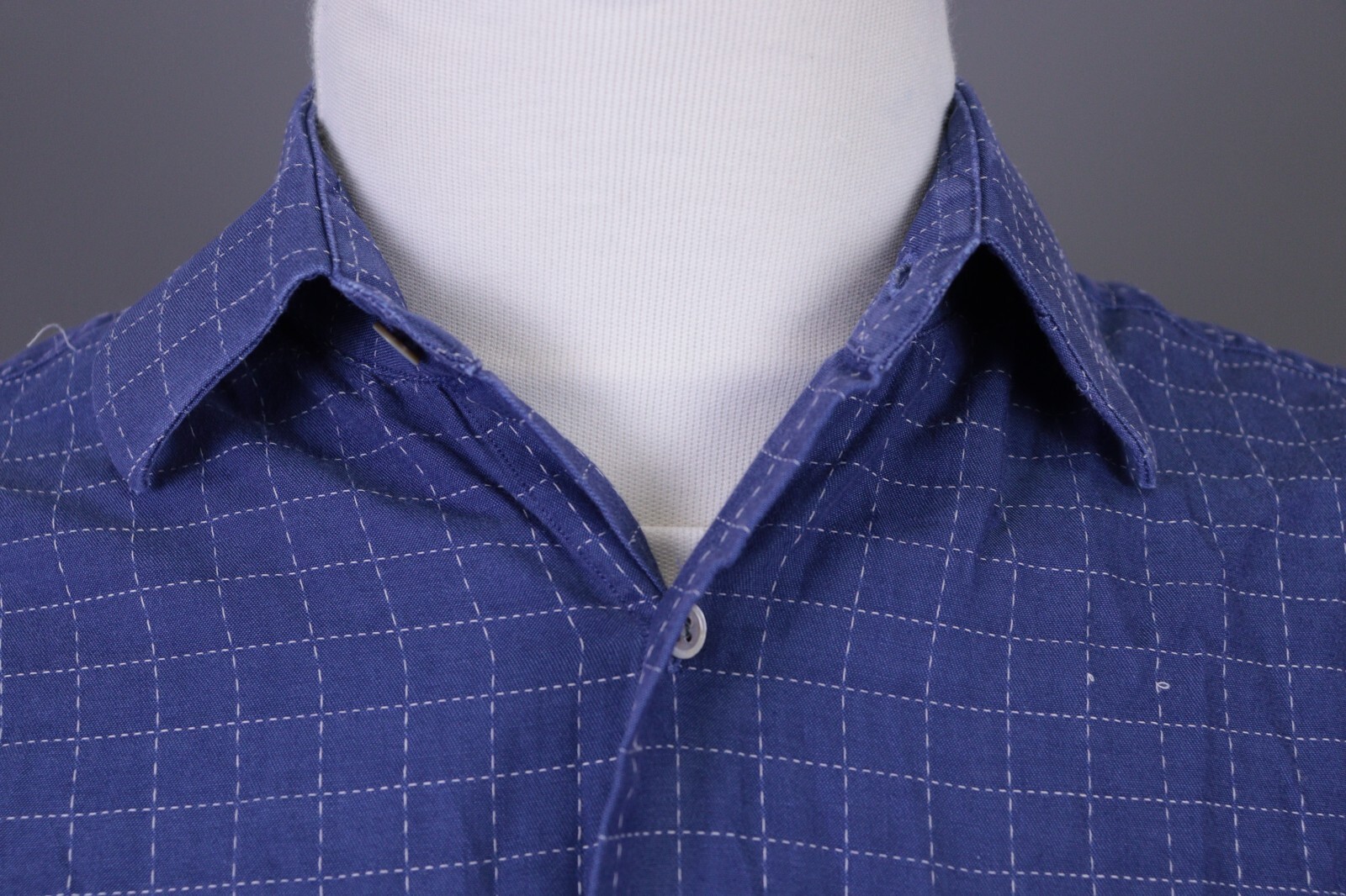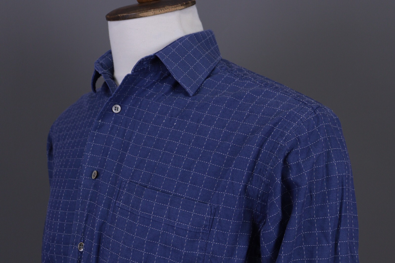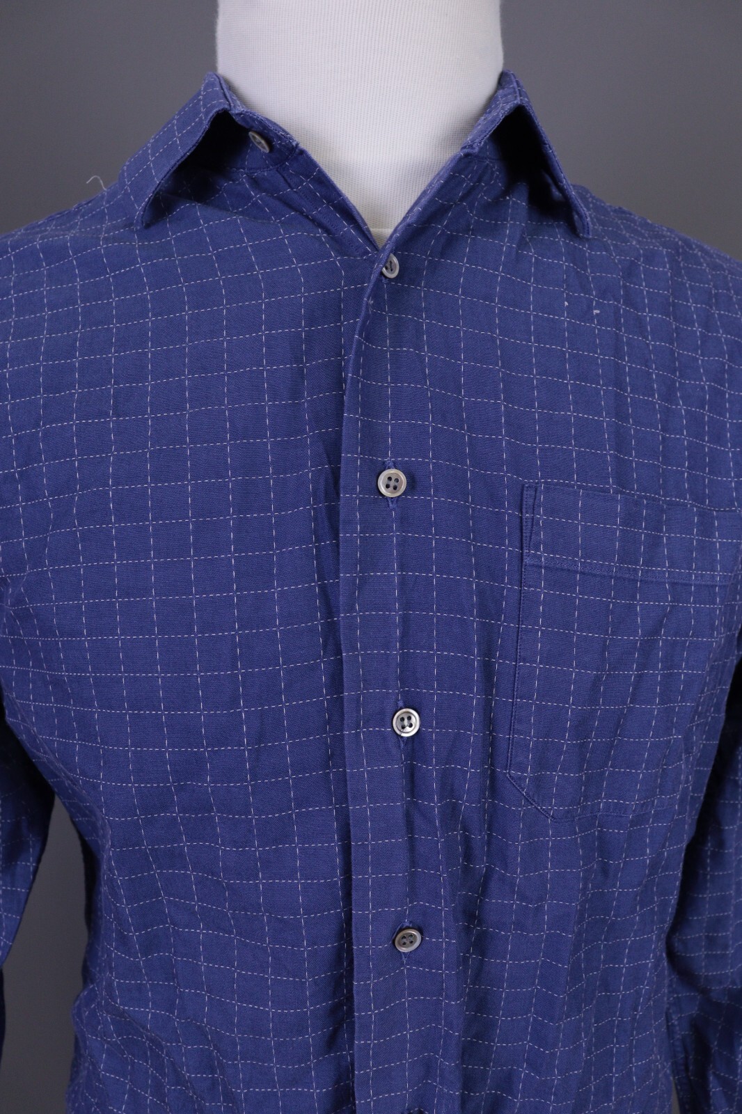 Christian Dior Blue Check Long Sleeve Button Down Dress Shirt Size 39 / 15 1/2