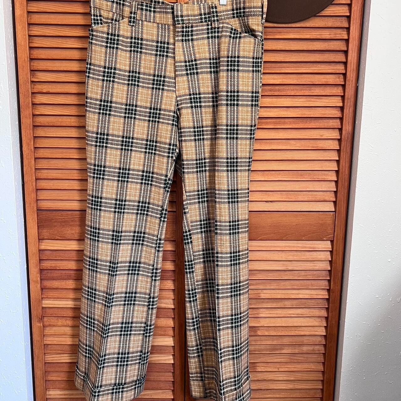 days sportswear vintage 70 s plaid pattern high rise wide leg trousers large