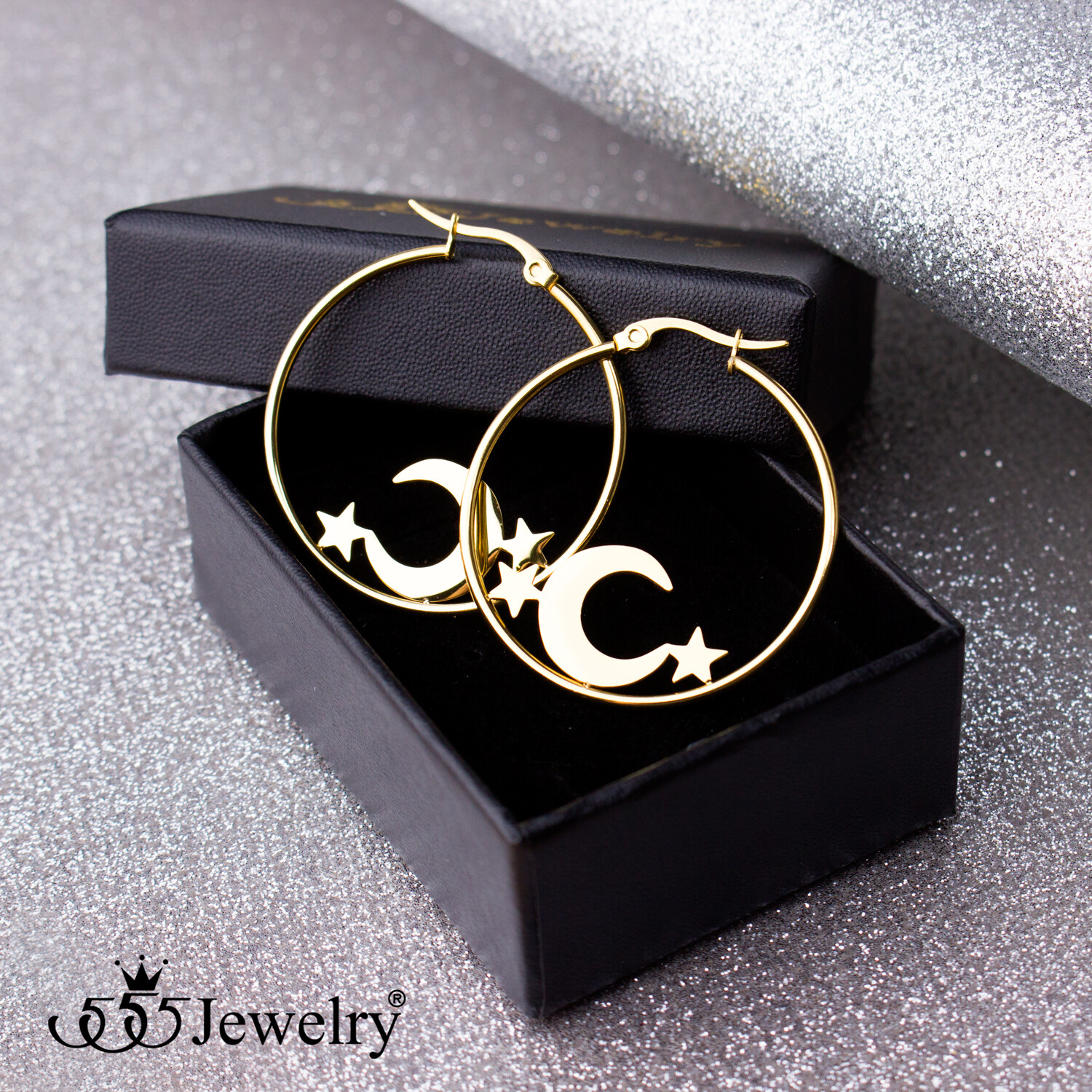 555Jewelry Stainless Steel Celestial Moon Stars Hoop Earrings for Women Girls