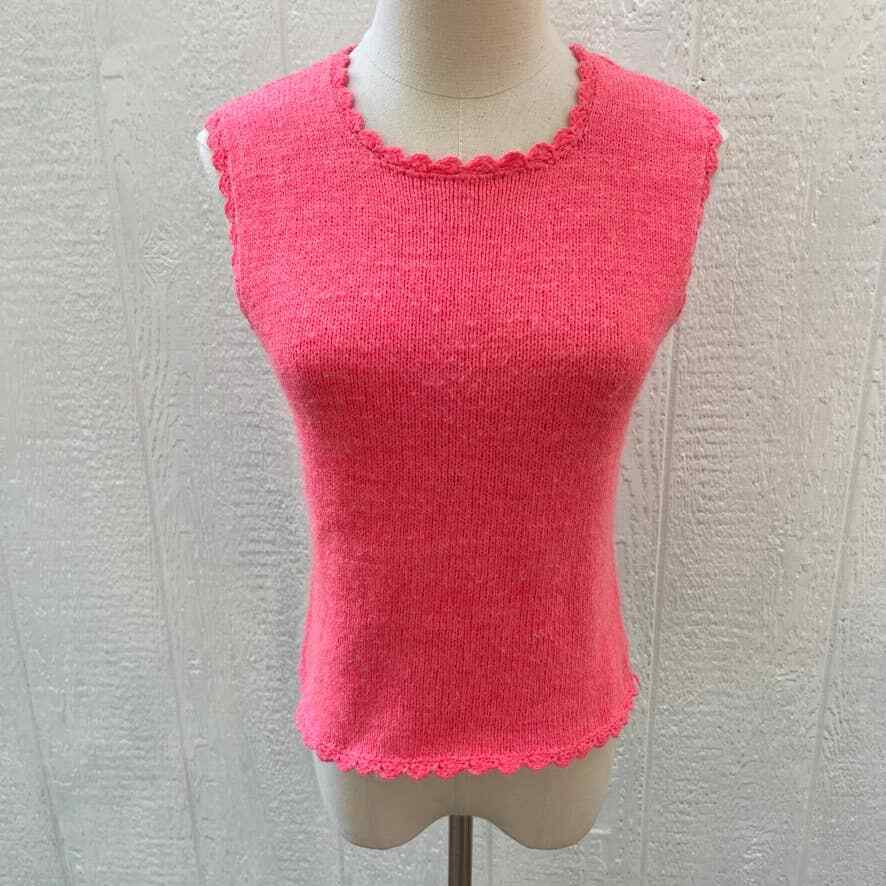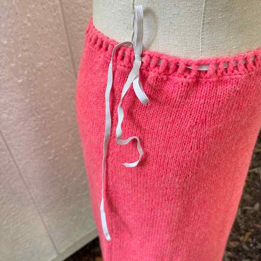 Vintage 80s Coral Pink Knit Skirt Set Sleeveless Top Pencil Skirt Home Made S M