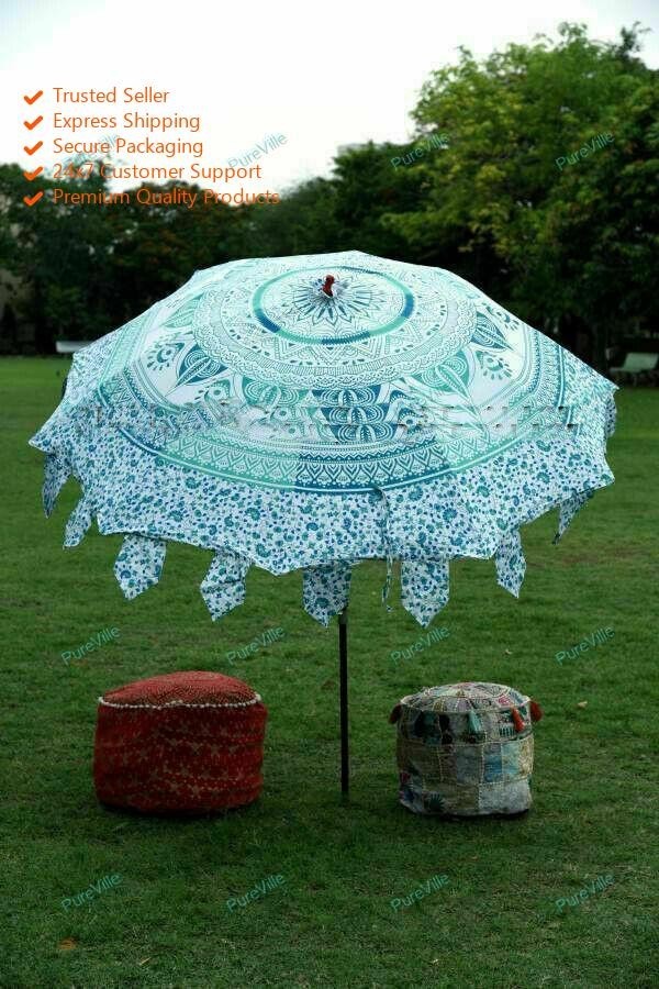 Indian Garden Summers Umbrella Cotton Hand Block Print Outdoor Sun Shade Parasol