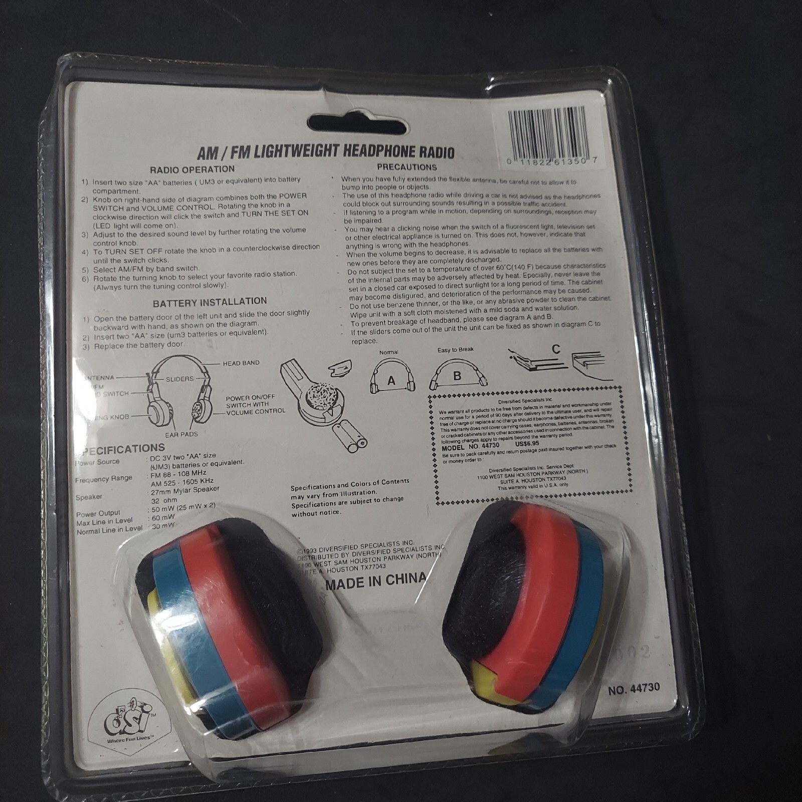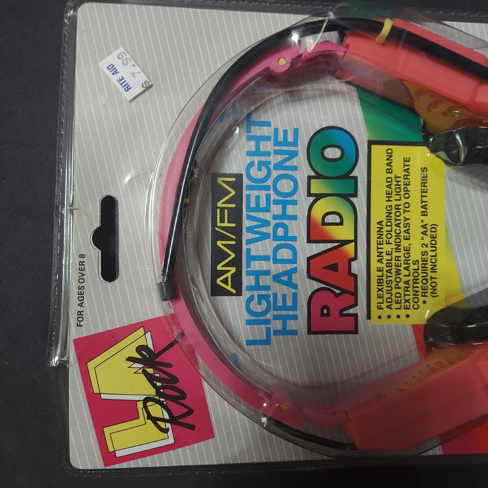 Vintage 90'S LA Rock AM/FM Lightweight Headphone Radio Headset Pink Yel Blue NOS