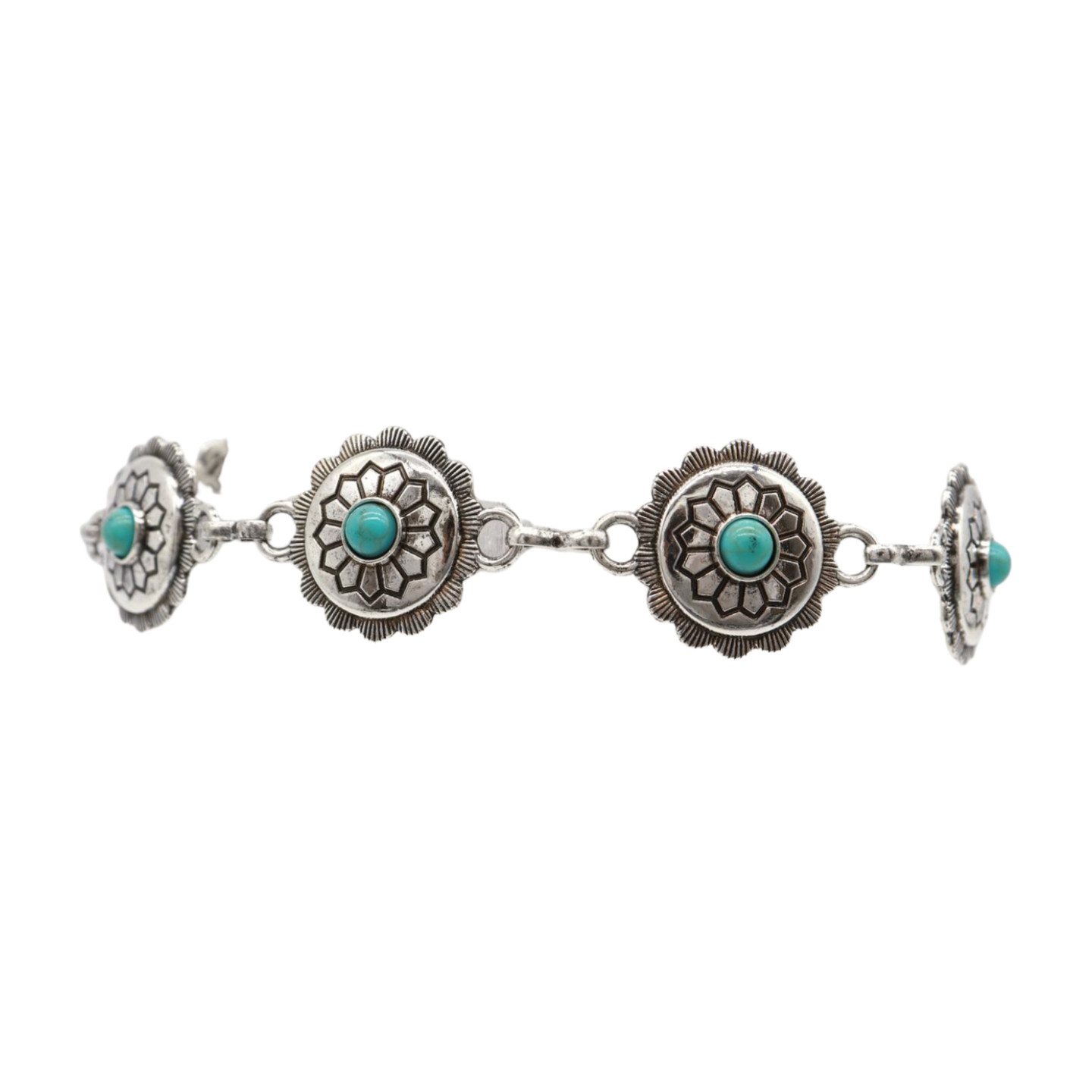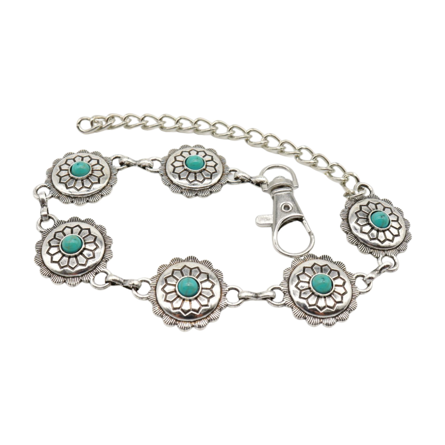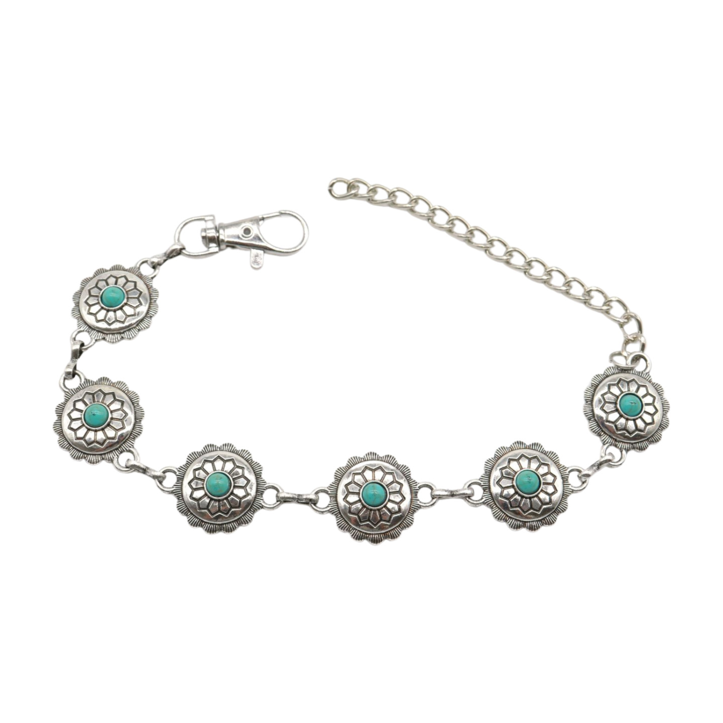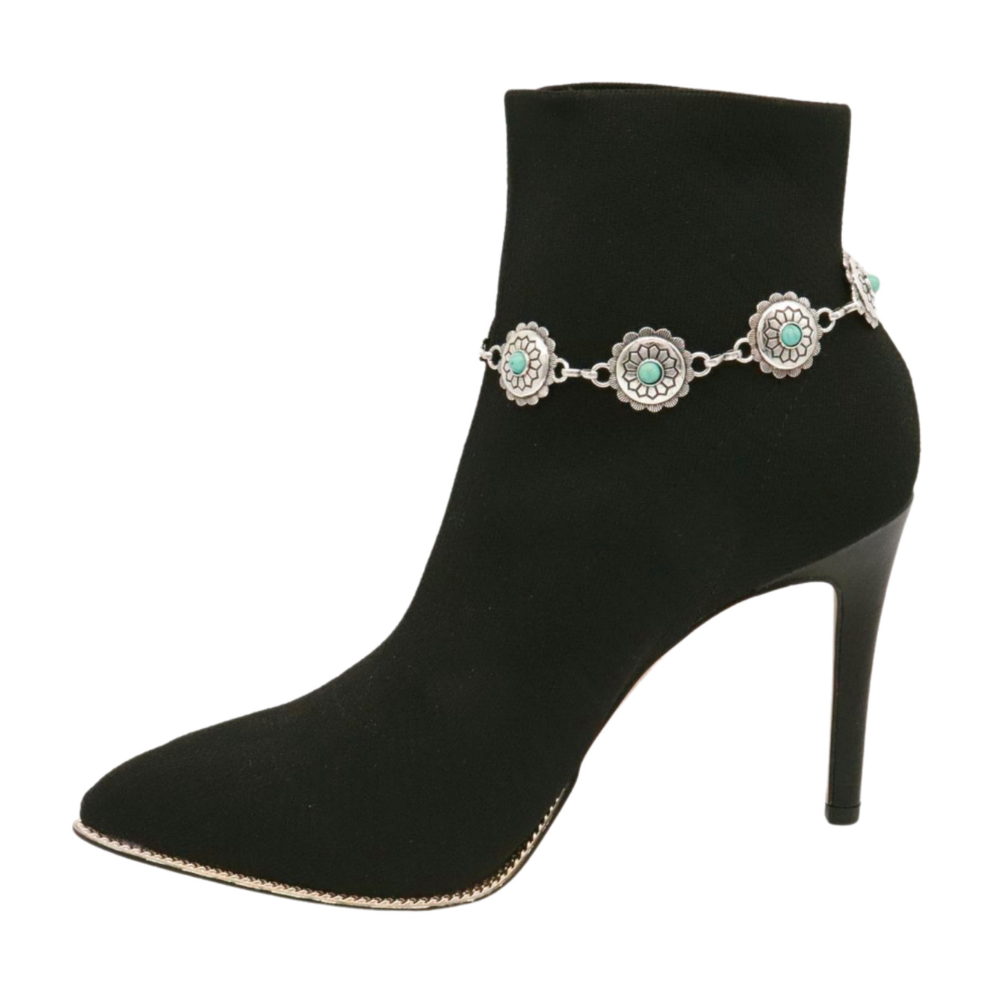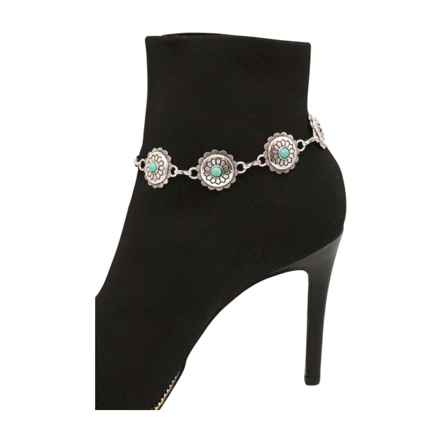 Women Silver Boot Chain Western Bracelet Shoe Flower Charm Turquoise Jewelry
