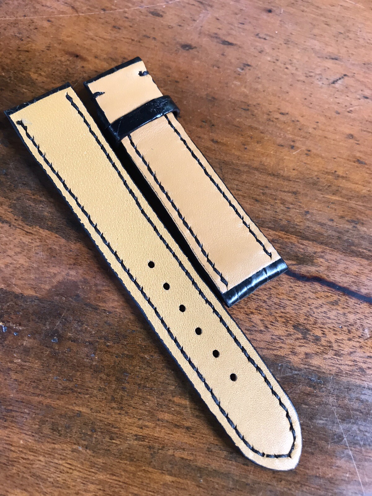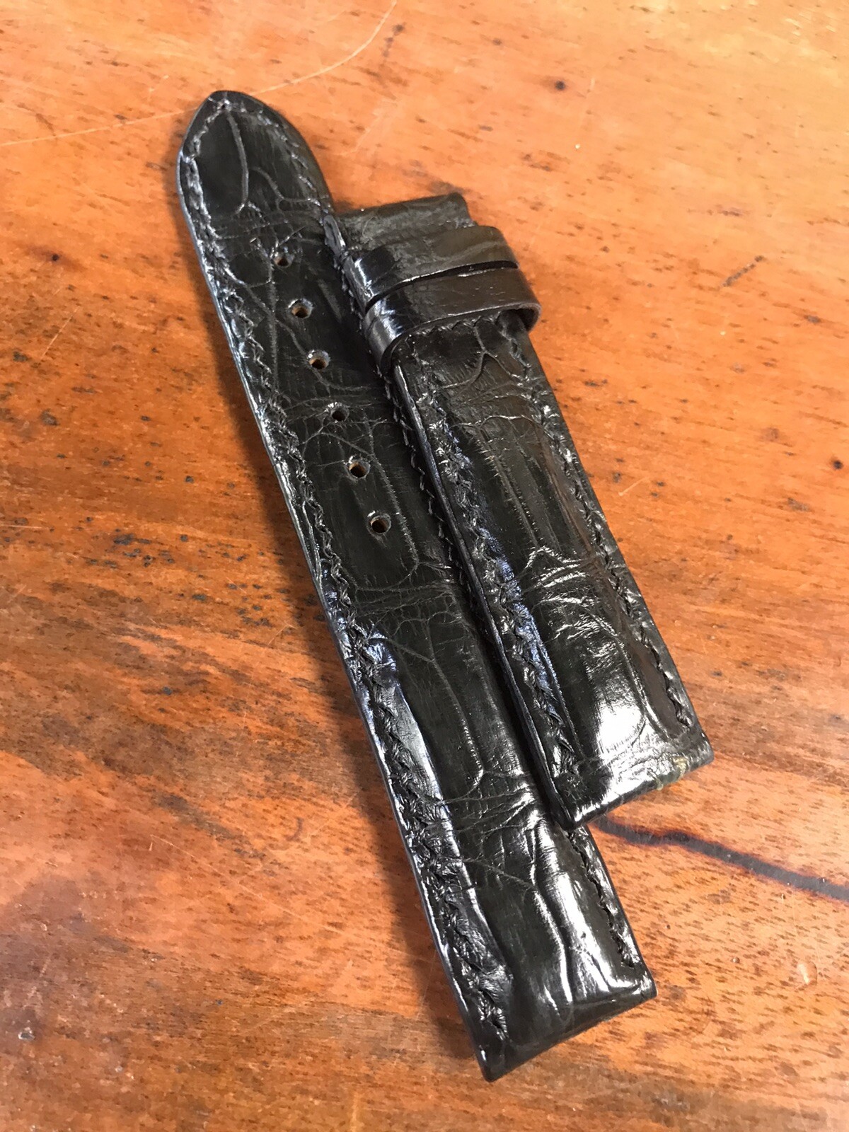 Size 20/18 Black Genuine Croc Leather Skin Watch Strap Band, Wristband