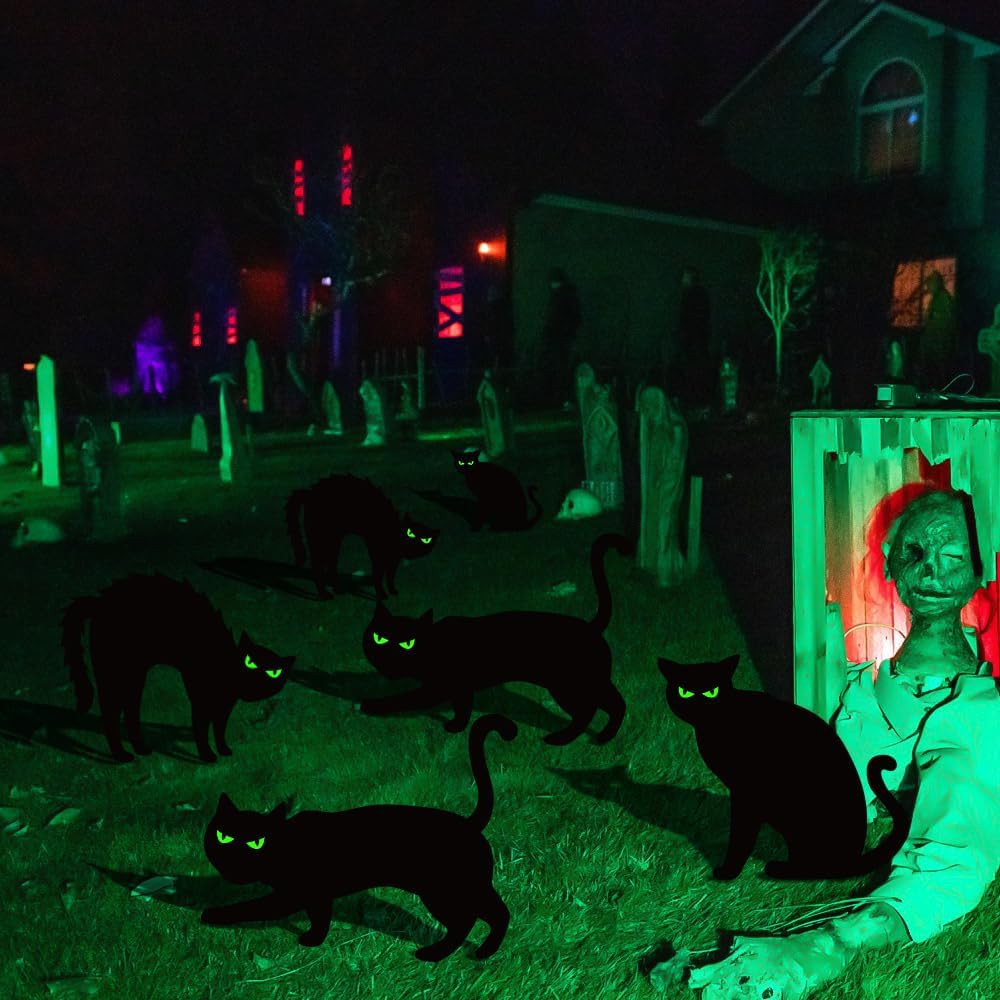 как выглядит Halloween Decorations Outdoor, 6Ct Black Cat Decor Yard Signs with Stakes, Scary фото