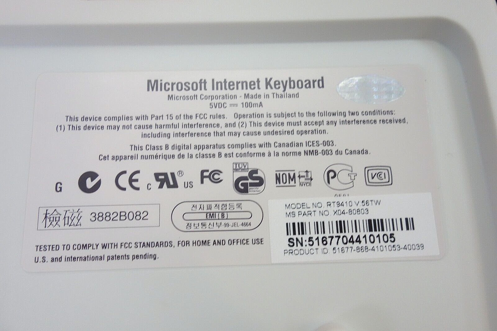 Microsoft Internet Keyboard PS/2 Detachable Palm Rest with box cd