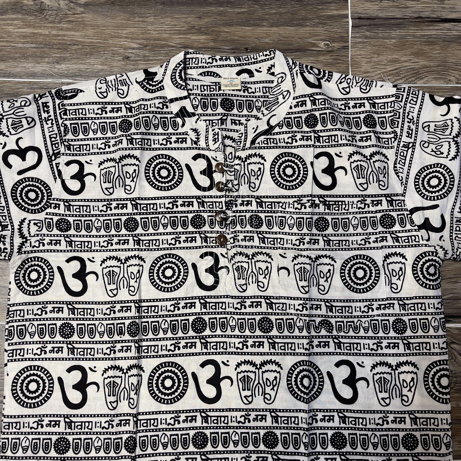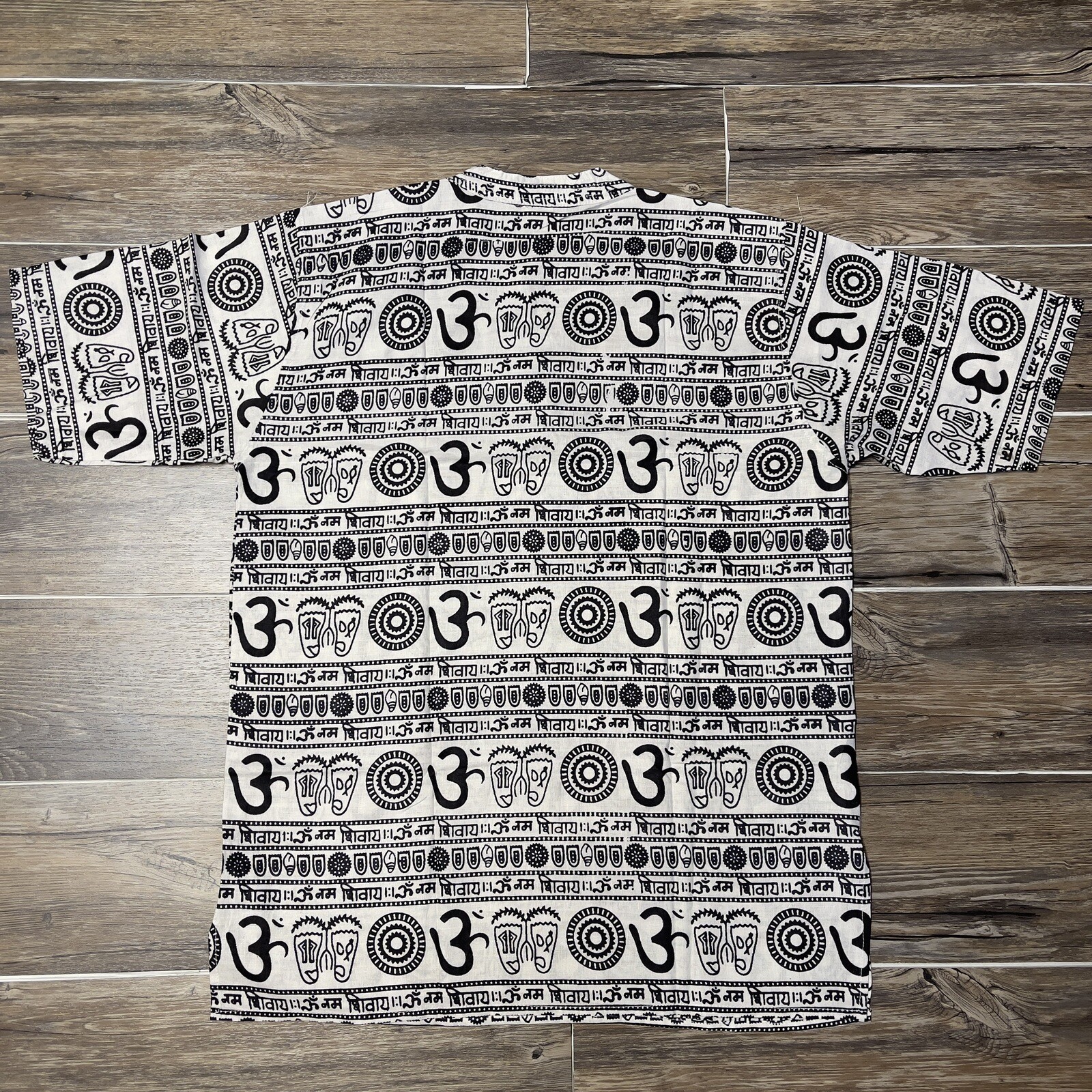 Om Namo Shiva Half Sleeve Collarless Shirt Summer Beach Yoga Wear Men Large NWOT