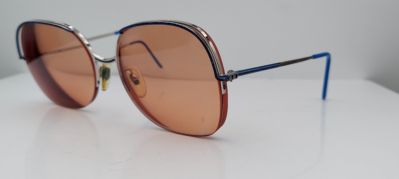 как выглядит Vintage Geoffrey Beene GB34 Silver Blue Oval Half-Rim Sunglasses FRAMES ONLY фото