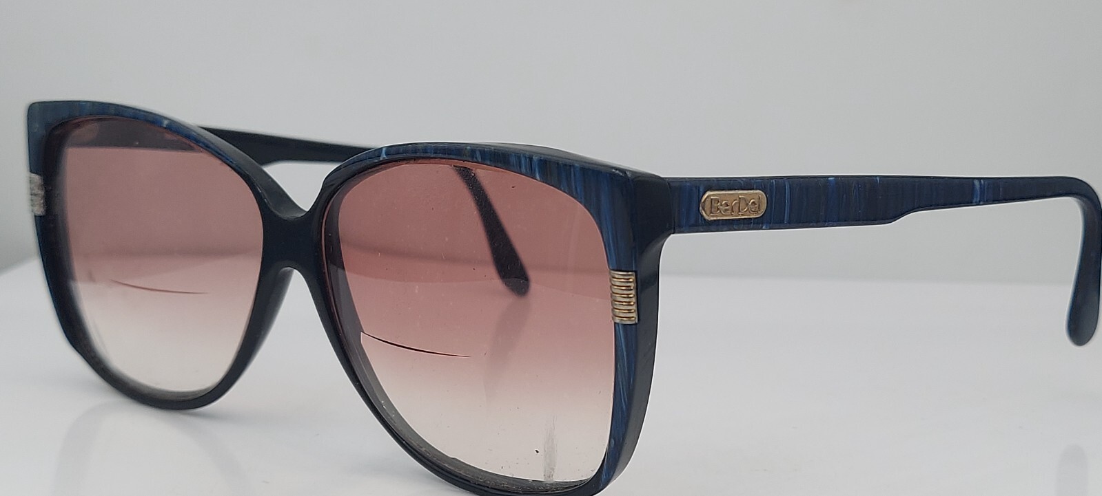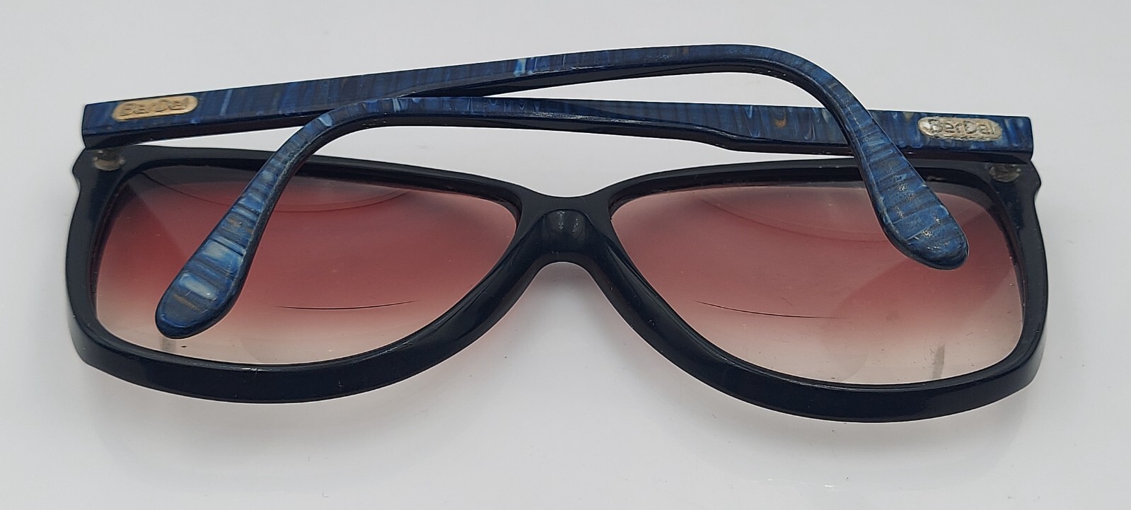 как выглядит Vintage BerDel Black Blue Oval Sunglasses Italy FRAMES ONLY фото