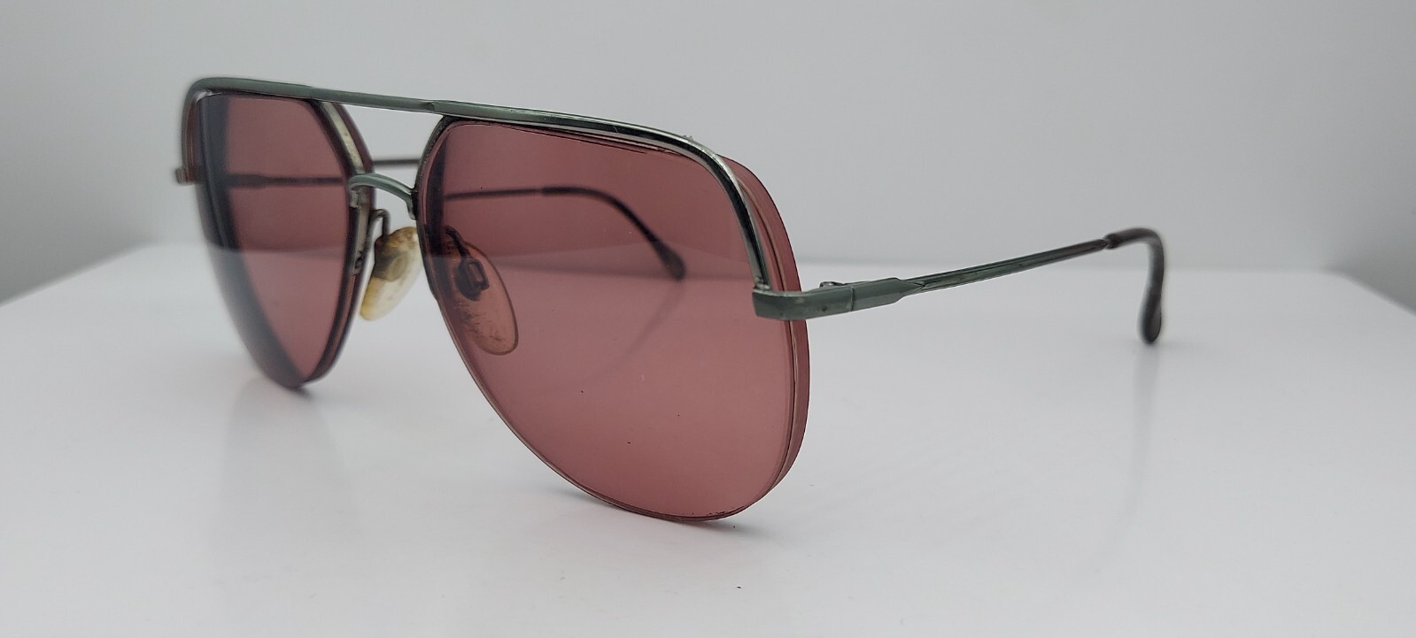 как выглядит Vintage Luxottica Green Pilot Half-Rim Metal Sunglasses Italy FRAMES ONLY фото
