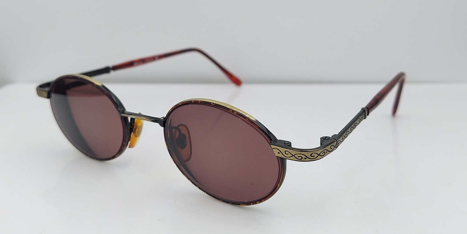 как выглядит Vintage Bella 68 Brown Gold Oval Metal Sunglasses Italy FRAMES ONLY фото