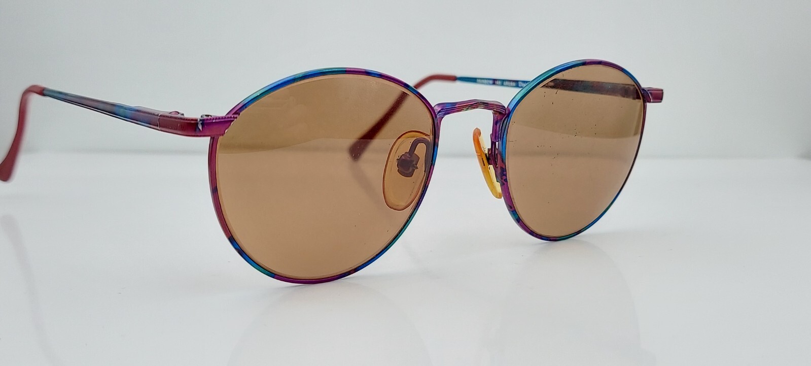 как выглядит Vintage Daniel Hunter by Rem Aruba Blue Purple Oval Sunglasses FRAMES ONLY фото