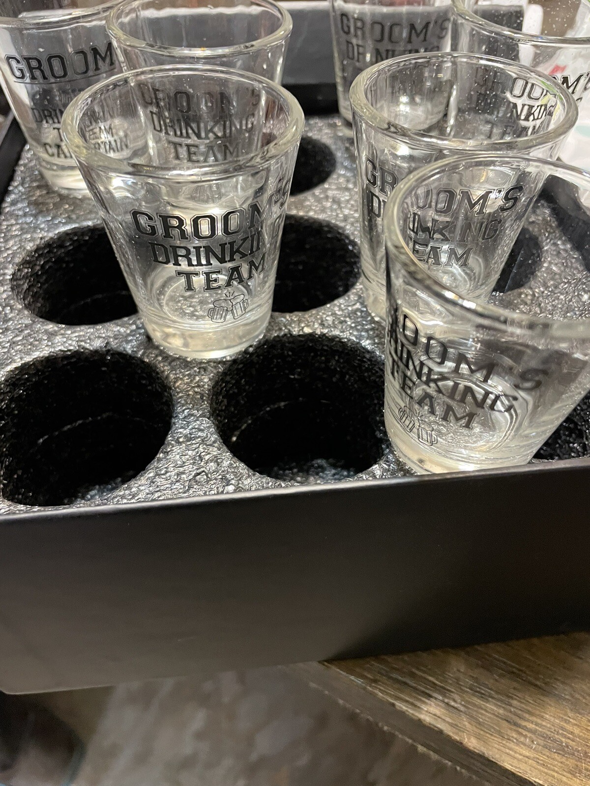 • Grooms 7 Shot Glasses Drinking Team