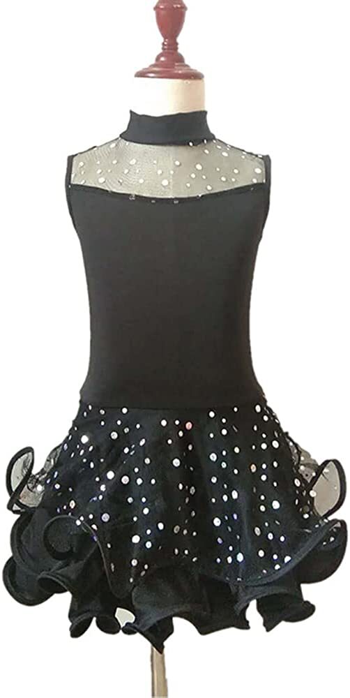 Kid Girls Dance Dress Sequin Mesh Tutu Ruffle Ballroom Latin Costume Long Sleeve