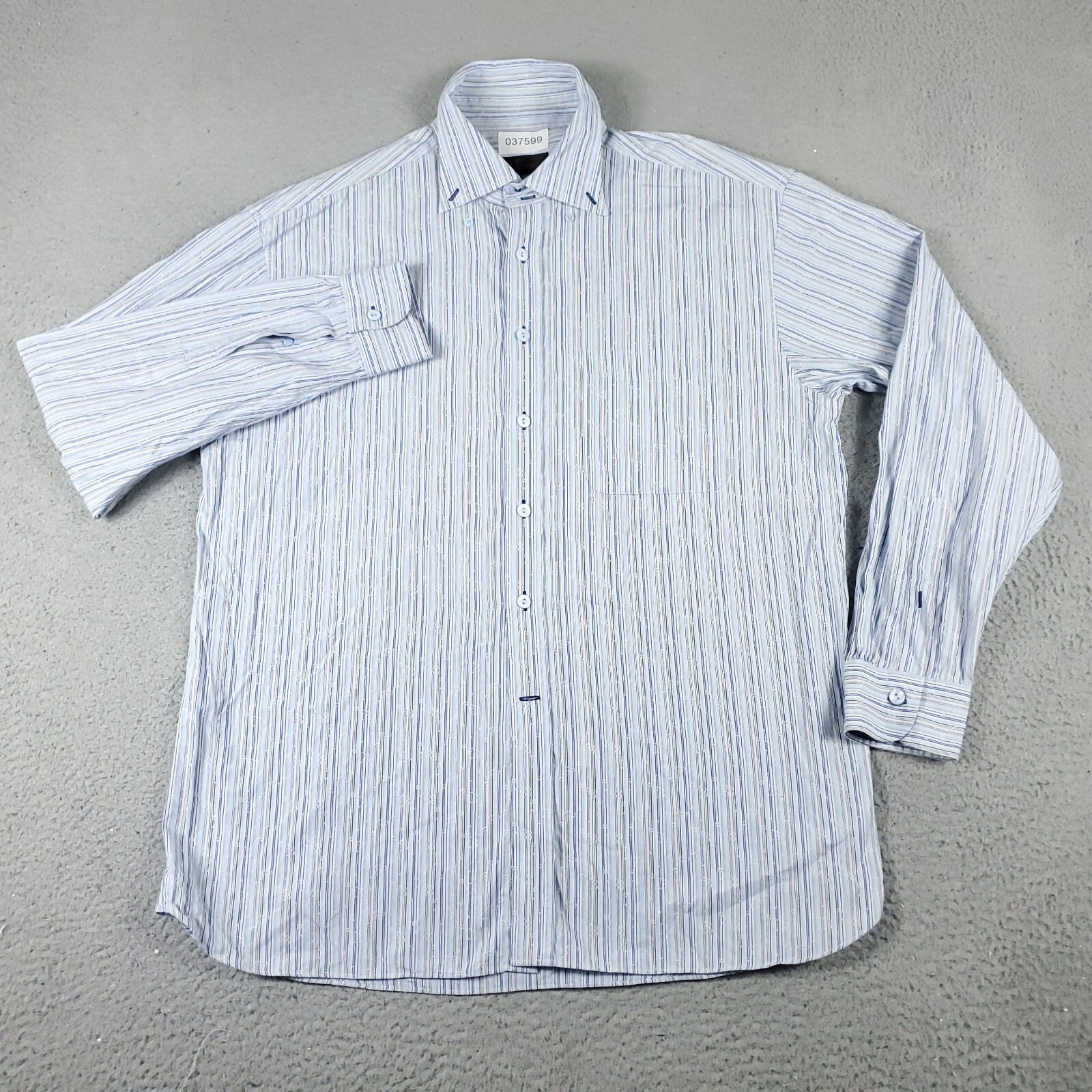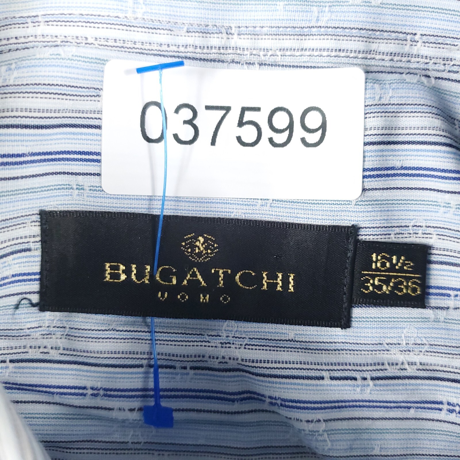 Bugatchi Uomo Shirt Mens 16.5 Blue Striped Dress Button Up Long Sleeve
