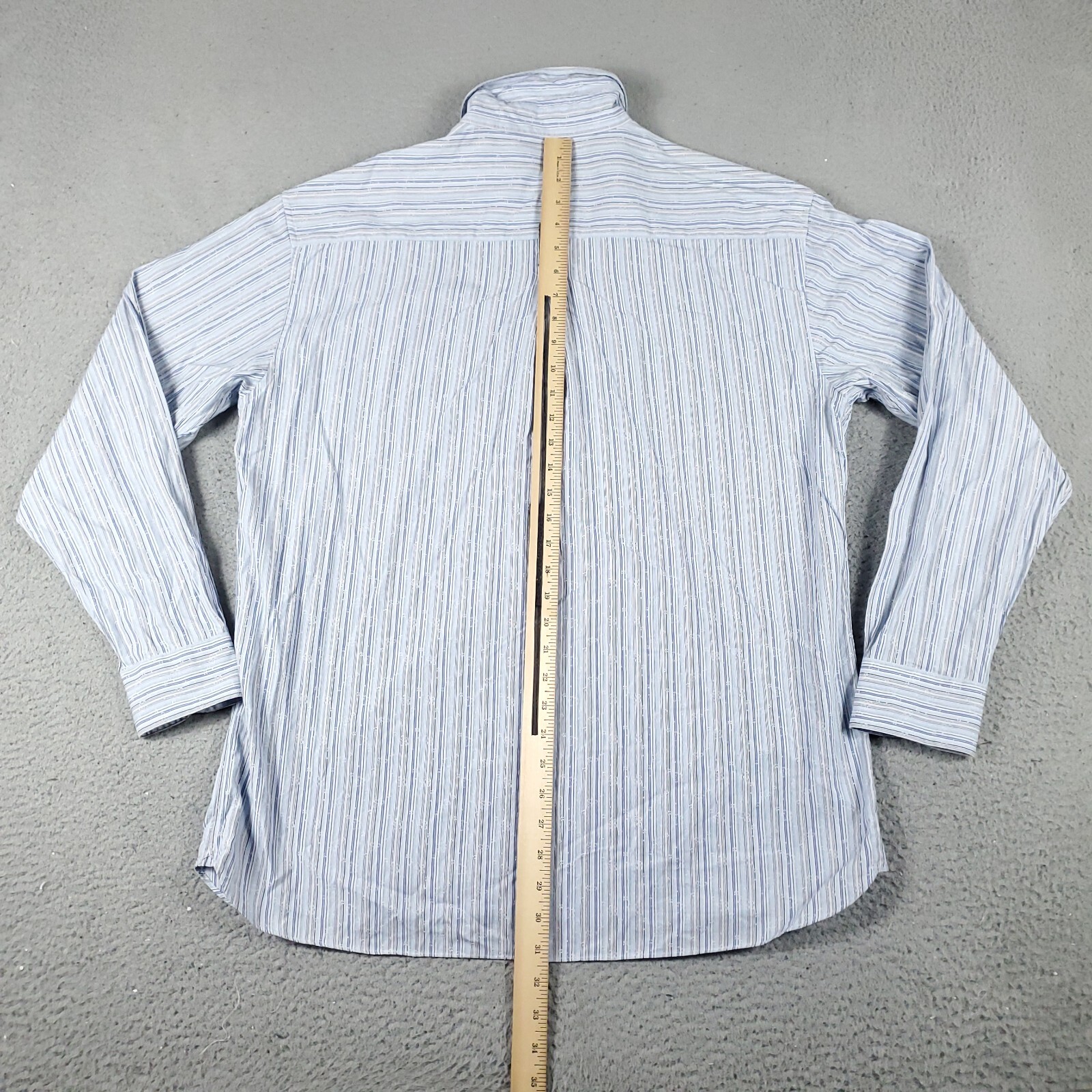 как выглядит Bugatchi Uomo Shirt Mens 16.5 Blue Striped Dress Button Up Long Sleeve фото