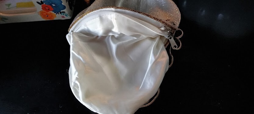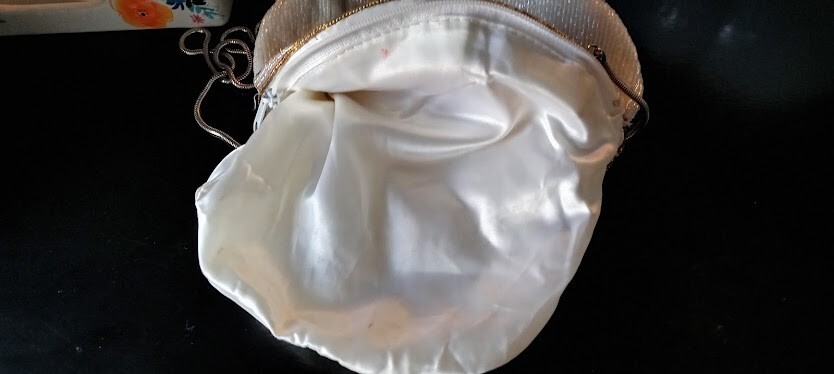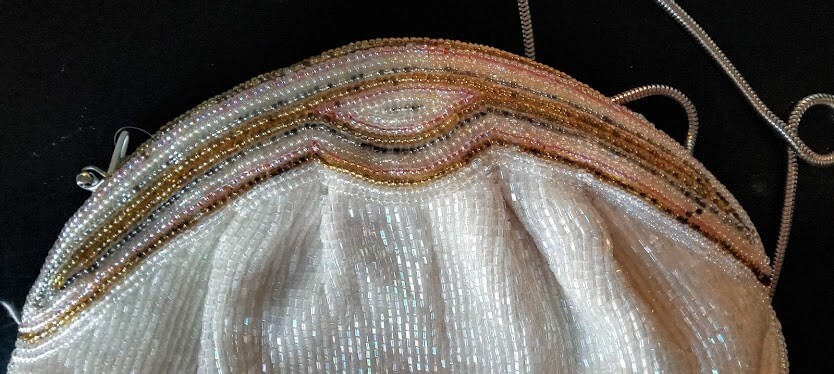 как выглядит Neiman Marcus VTG 90s Shimmer Beige Beaded Shoulder Evening Bag фото