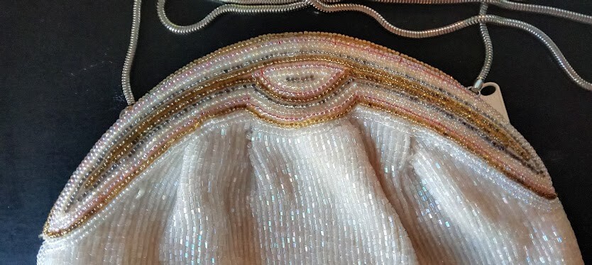 Neiman Marcus VTG 90s Shimmer Beige Beaded Shoulder Evening Bag