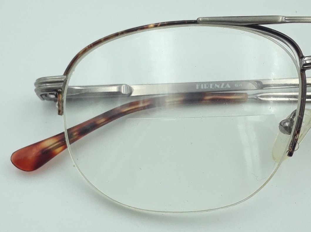 как выглядит Vintage Firenza 64 Tortoise Silver Pilot Half-Rimmed Sunglasses FRAMES ONLY фото